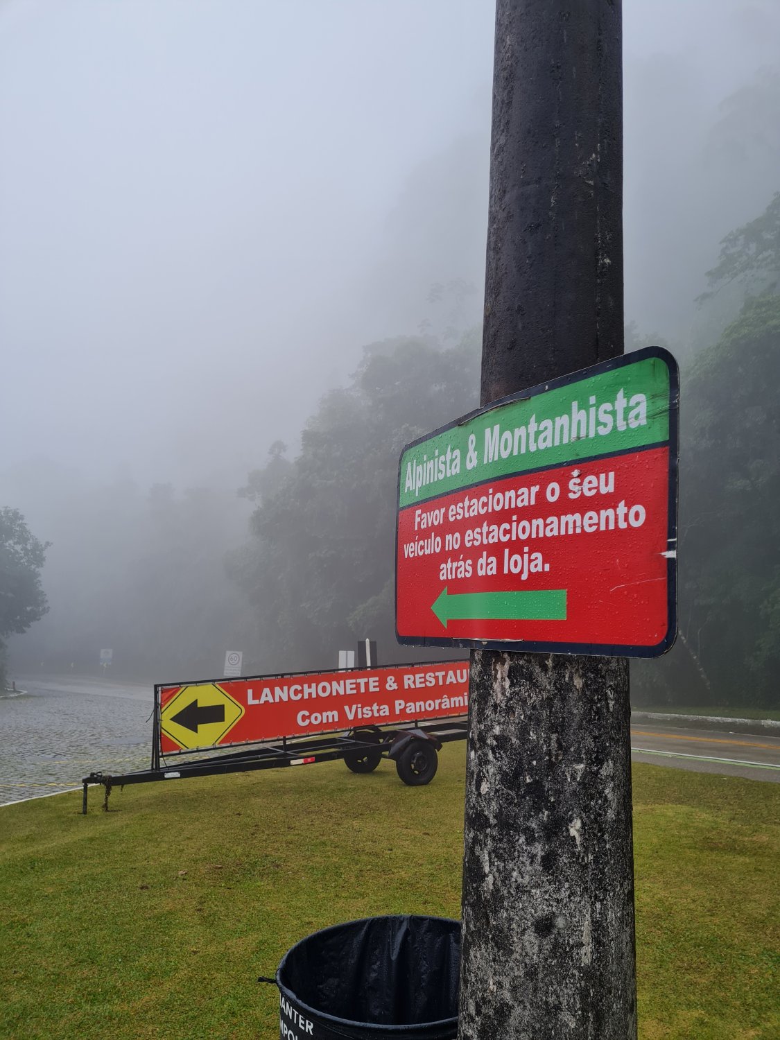 Sai do trabalho as 16h15, passei em casa, coloquei a cargueira e a mochila de ataque no carro (já vinha arrumando tudo desde segunda), e o Fernando chegou às 16h30. Antes das 17h estávamos na estrada, parando só para trocar de motorista no meio do caminho e comer um jantar leve, e as 21h30 paramos em hotel de Resende para dormir. Às 7h do dia seguinte já estávamos na estrada novamente, e um pouco preocupados. Saímos de Resende em uma neblina leve, mas após descer a serra sentido o Arco Metropolitano do RJ a chuva deu as caras, e estava forte. Subimos para Teresópolis em uma névoa densa, não foi possível nem ver o Dedo de Deus do Paraíso das flores (famoso ponto de observação da Serra dos Órgãos com muitas opções gastronômicas). A chuva continuou no caminho e só foi apaziguar numa distância de uns 50km antes do Pico Maior. Ali paramos para almoçar na “Linguiça do Padre”, ainda não era nem meio-dia, só tinha a gente no local, mas foi uma excelente opção para experimentar a especialidade da casa.
