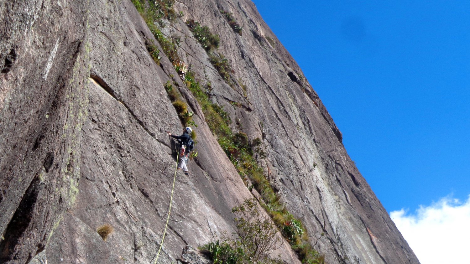 Escalada MontañismoA escalada é um esporte que tem muitas vertentes, uma delas é a escalada tradicional, que muitos se referem como "clássica". Normalmente os praticantes deste estilo buscam desafios cada vez maiores, independente do tamanho da via, que exijam da capacidade física, técnica e mental do escalador, sem contar a logística necessária para se chegar ao cume e descer sem maiores problemas. Por isso, é sempre útil ler relatos, assistir a vídeos e ver fotos das vias que se pretende fazer. Sou muito grato por aqueles que disponibilizaram esse tipo de material online, que me ajudou diversas vezes, então pretendo fornecer aqui meu humilde relato para, quem sabe, ajudar alguém a conquistar esta via. Espero também que o escalador que ler este relato tenha a consciência de tratar a montanha e a natureza com o respeito que merecem.
