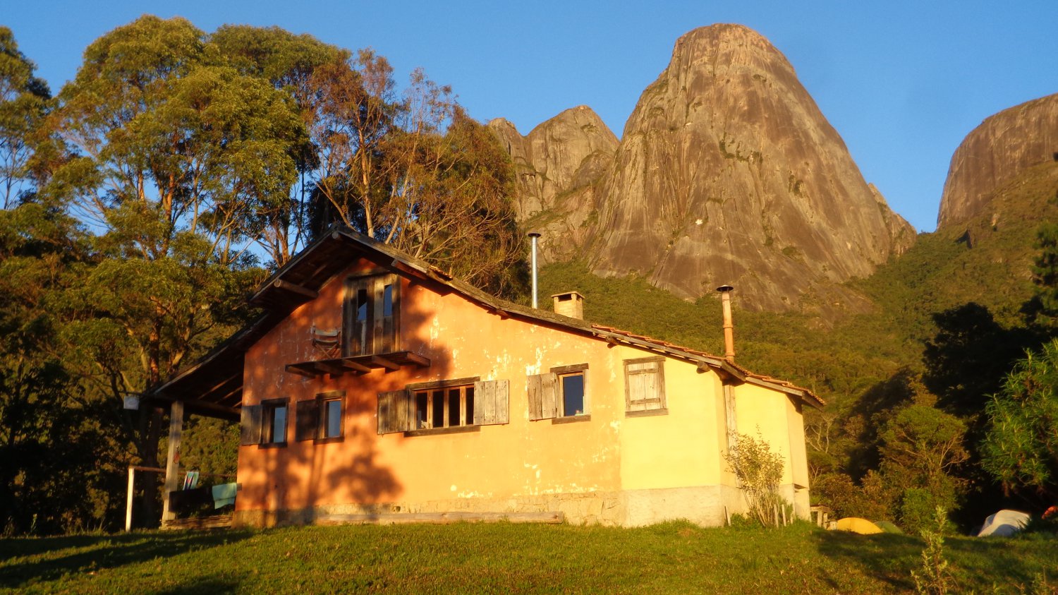 Por volta das 15h estávamos de volta no carro, seguindo rumo à República Três Picos, abrigo do Paulo Mascarim. Paramos o carro num sítio, aproximadamente 1km abaixo do abrigo. Seria possível subir com um carro 4x4 mas, como não era nosso caso, fomos a pé mesmo. Deu tempo de apreciar a paisagem com a luz do dia e arrumar as coisas. O local é realmente incrível, e a vista dos três picos é hipnotizante! O Pico Maior, que já é belo por si só, paredão de granito e pouca vegetação, impõe respeito a quem queira chegar ao seu cume. Não era nosso objetivo, mas ficou uma grande vontade de tentá-lo no futuro próximo.