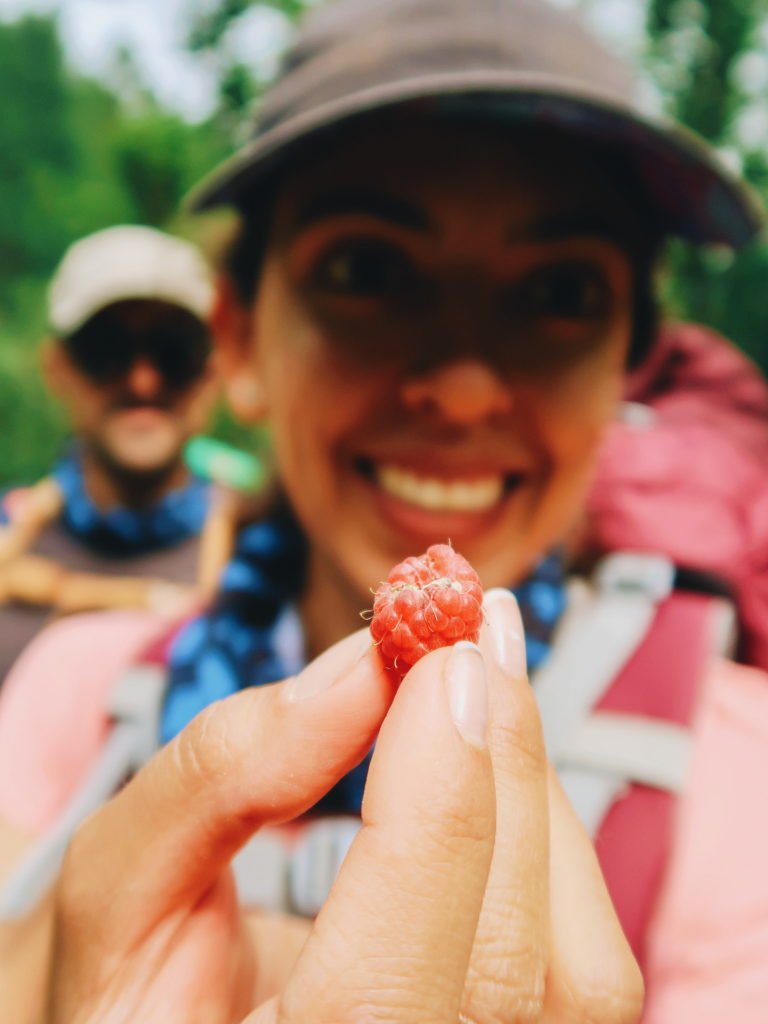A única coisa que fazia a gente esquecer um pouco da trilha eram as arvorezinhas de mirtilo (blueberry) na beira da trilha. Eram pequenininhas e o interior era escuro, diferente os mirtilos que a gente conhece por aqui. Na verdade, hoje eu ainda me pergunto se aquelas frutinhas eram mesmo mirtilo? Se não fossem, seriam o que? Venenosas não eram porque comemos bastante e estamos vivos para contar a história.
