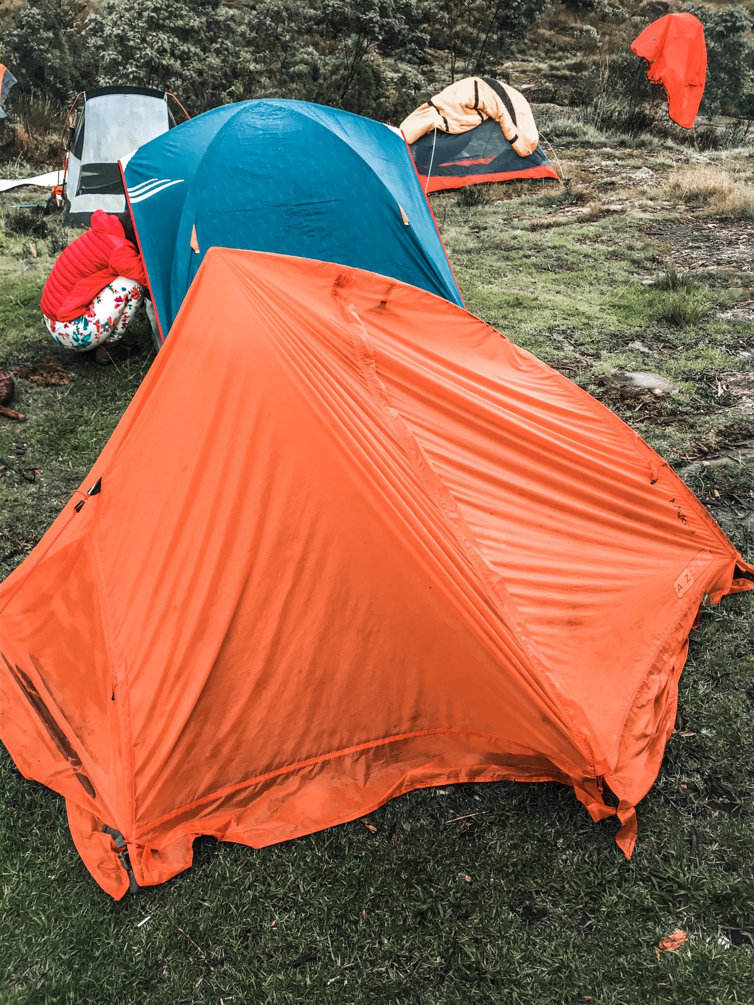• A haste da barraca quebrou, fizemos uma gambiarra, mas choveu muito...nos molhamos dentro da barraca;