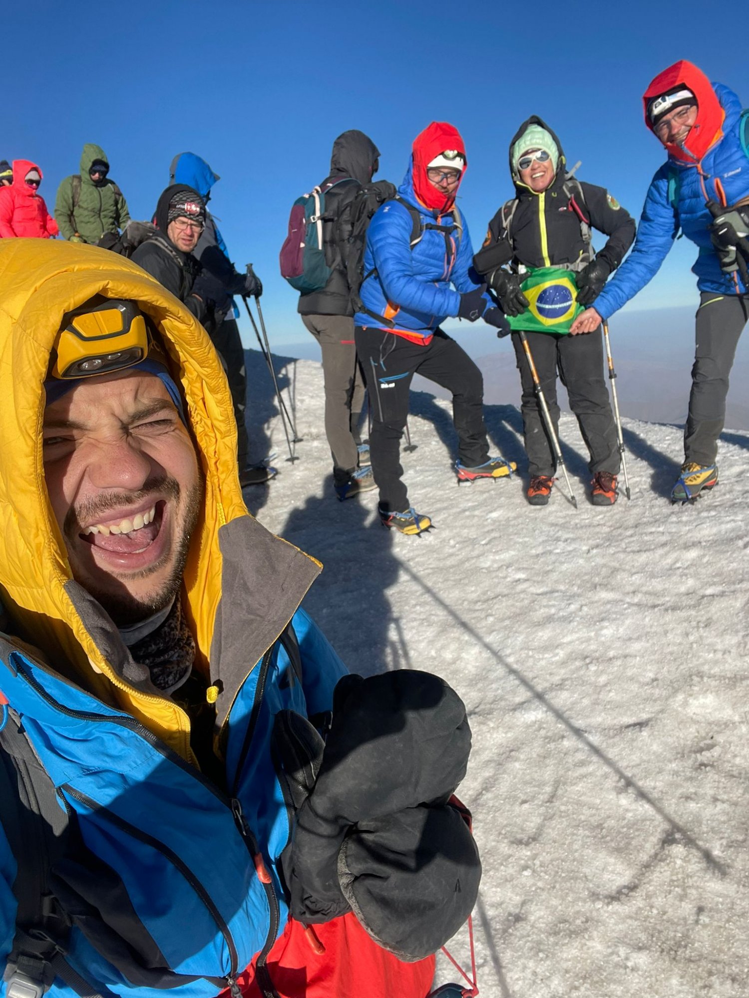 No quarto dia, subimos para o camp2 (4.200) bem cedo. Comemos, nos hidratados, dormimos cedo e na madrugada foi o ataque ao cume. Foram mais ou menos 7 horas de subida e descida. Mil metros de altimetria acumulada até 5.137m. Muito trevas pedra no começo e no final a chegada ao glaciar que necessitamos colocar o crampon. A bota não necessita ser dupla mas é importante ser uma bota rígida para alta montanha. Venta muito e o frio é intenso.