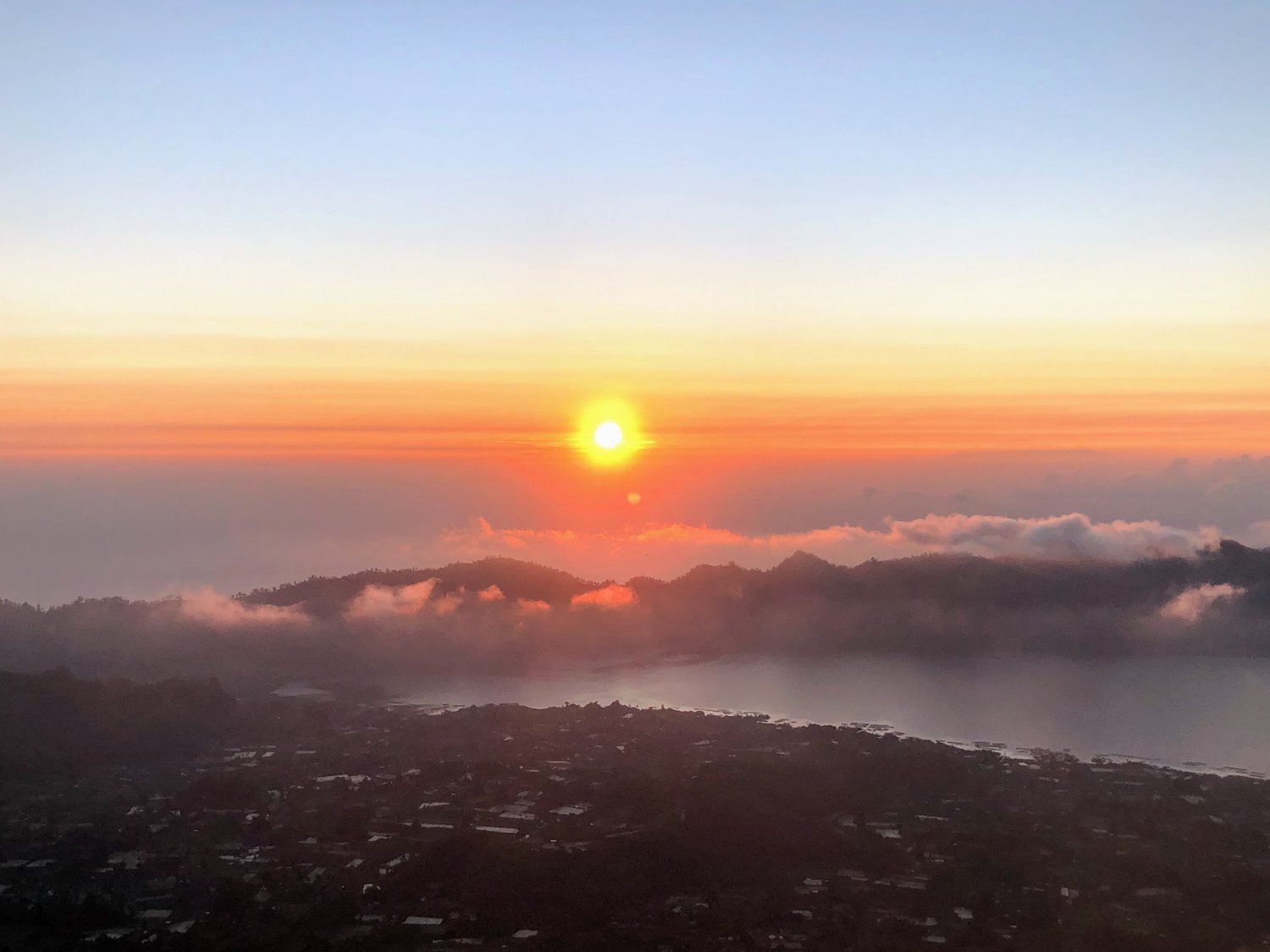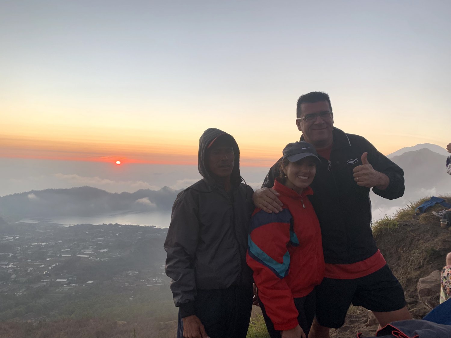 O trekking começa na cidade de Ubud que fica a 2 horas de Bali. O motorista nos pegou no hotel a 1:30 da manhã e seguimos de carro até a base da montanha. As 4:00 da manhã iniciamos a subida. Foi um pouco mais de 1:30 de caminhada até chegarmos no cume da montanha.