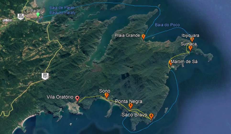 RJ x Paraty (baldeação) x Praia Grande da Cajaíba (2h de barco)