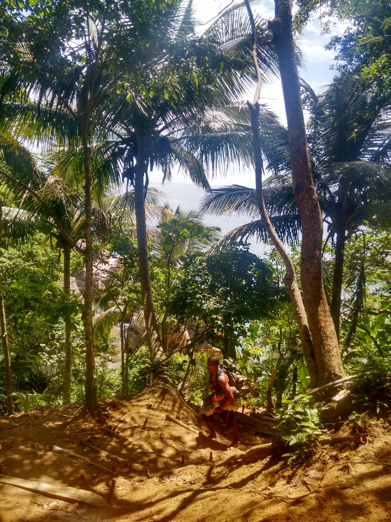 A Praia da Sumaca dispensa comentários, e é uma das mais roots de toda a reserva, só tem um único morador, o Seu Manequinho, que dispõe de um camping e quiosque. Demos nosso rolê por lá e passamos à noite, no dia seguinte nos preparamos para fazer a trilha para Martim de Sá, também de dificuldade considerável tendo em vista o sobre e desce e o peso, mas o visual e a atmosfera do lugar dão um gás especial para seguir. Não tenho muitas lembranças de Martim, e nem fotos, mas lá também só há o camping da família do Seu Maneco (outra importante liderança, que faleceu recentemente [agosto de 2020]).