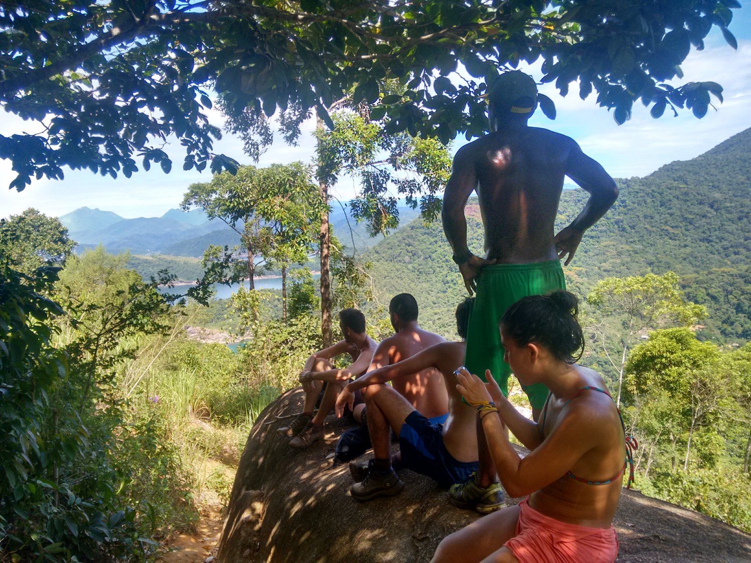 Como já chegamos no escuro, a família da Dona Dica (importante liderança e resistência caiçara) deixou a gente dormir no quiosque da praia mesmo, sem ir pro camping dela que fica mais pra dentro da floresta. De manhã nos levantamos bem cedo. O lugar era tão lindo que não conseguimos ir embora no dia seguinte de acordo com nosso cronograma, então dia 27 só exploramos a PG e fomos em uma das suas cachoeiras.