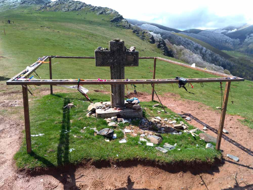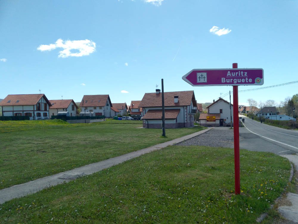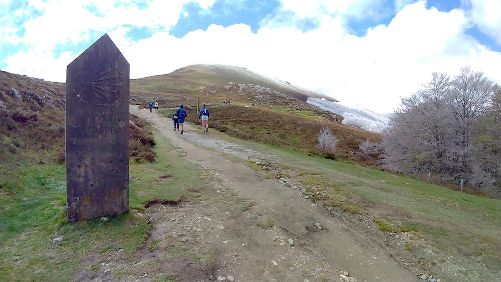 Passamos pela Cruz de Thibault e pela fronteira entre a França e Espanha, com um marco de pedra escrito Navarra/ Nafarroa para sabermos que estávamos entrando em território Espanhol. ♥