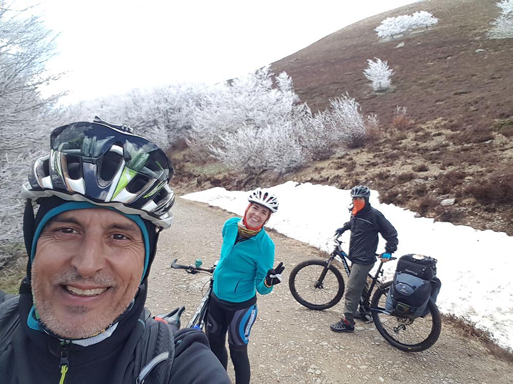 Ficar parada estava me deixando com muito frio e comecei a tremer demais, então deixamos o Pedro e Francisco no Refuge Orisson e seguimos pedalando para ficar o menor tempo possível parados. A partir desse ponto a temperatura estava muito baixa e o vento não dava trégua.