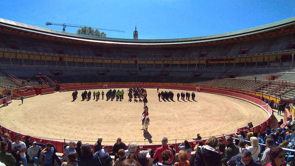 A cidade é bastante conhecida pela festa de San Fermín que dura uma semana no mês de Julho e encerra a festividade na Plaza de Toros Monumental de Pamplona. Fomos até o local conhecer a arena de touradas e nos deparamos com uma cerimônia militar, aparentemente de formatura de novos integrantes.