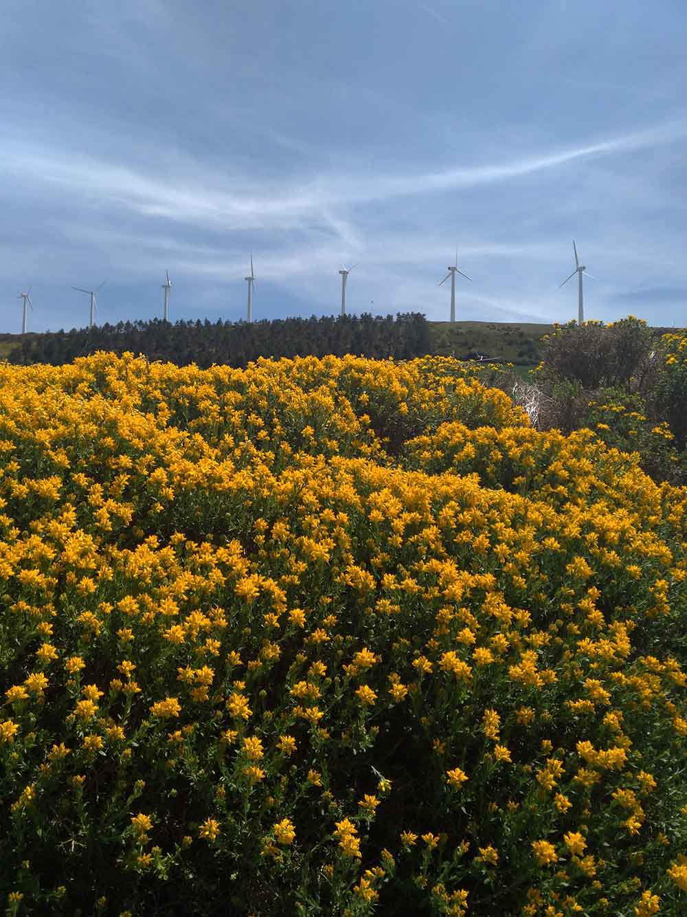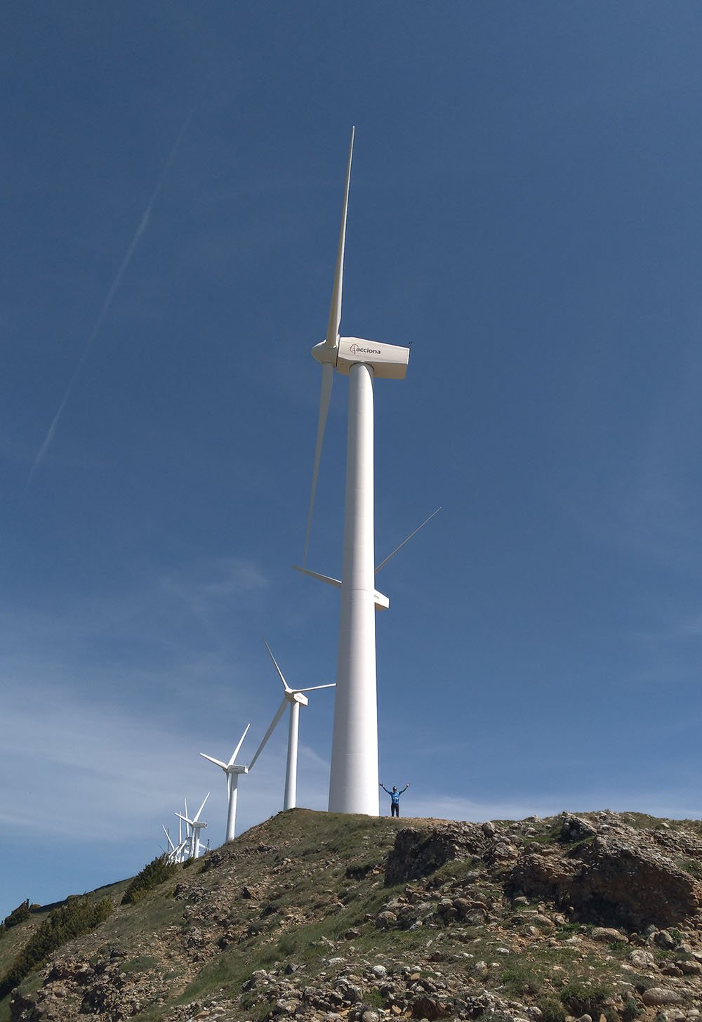 O parque eólico que estava bem distante, com o passar das pedaladas vai se aproximando e percebemos a grandiosidade dos aerogeradores. De longe eu tinha a impressão de serem pequenos ventiladores, mas conforme chegávamos perto até imaginei Don Quixote lutando contra eles, como fez com os moinhos de vento, tamanha sua proporção ao nosso lado. Na foto abaixo olha o tamanho do Wilson ao lado do aerogerador!