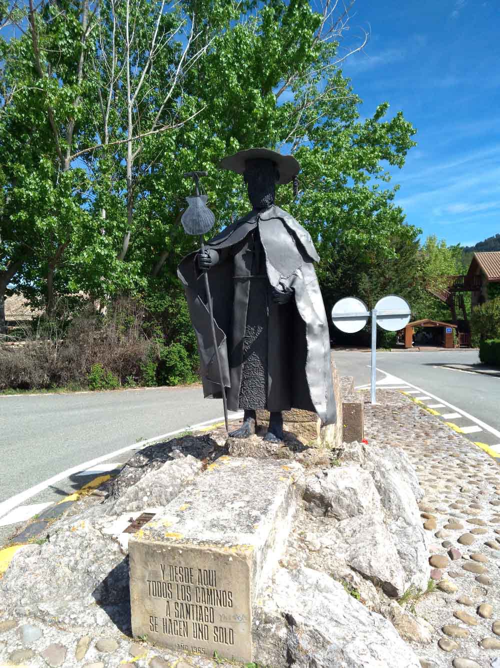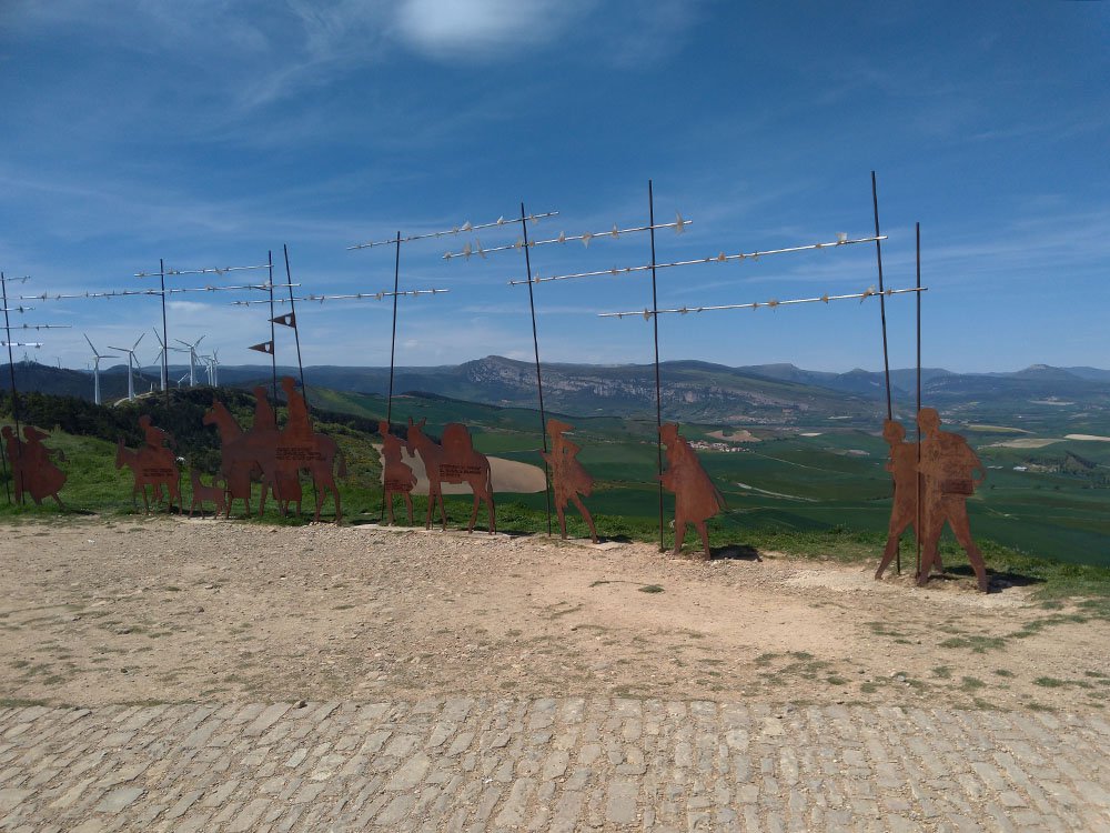 "A empresa que construiu o parque eólico existente na serra, a EHN, e a associação de amigos do Caminho de Santiago promoveram a construção de um monumento ao peregrino em 1996. O monumento é um conjunto escultórico de Vicente Galbete constituído por 14 silhuetas em tamanho natural, feitas em chapa de ferro, representando uma comitiva de peregrinos de diferentes épocas, a pé, a cavalo e de burro, de cujas lanças nascem raios de luz e estrelas e se combinam visualmente com os geradores eólicos. No texto que acompanha a obra pode ler-se: «onde se cruza o caminho do vento com o das estrelas.» (Wikipedia)