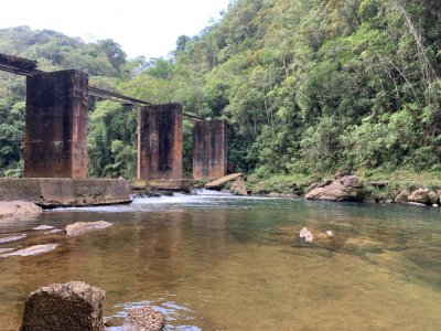 Percurso na ferrovia sorocabana na serra do mar paulista.