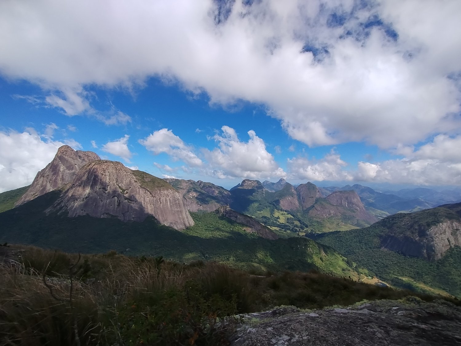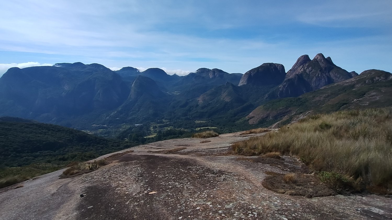 O dia estava espetacular com aquele visual absurdo que o cume dessa montanha proporciona: de um lado, as montanhas da Serra dos Órgãos ao fundo, os cumes da Mulher de Pedra (Seio, Queixo e Nariz) e o Morro do Carmo. Olhando para a esquerda, podemos ver o Sanhaço do Frade, o Pico Maior do Vale dos Frades e ao fundo, os Três Municípios. Seguindo nesse giro, temos o Beal, os Três Picos, o Capacete, a Caixa de Fósforos, o Cabeça de Dragão, o Toledo ou Ronca Pedra, o Ceb 83 e o Palmital ao fundo. Avistamos também as montanhas do lado oposto da estrada do Vale dos Frades como o Duas Serpentes, Pico do Quarteto, Panorama a Bessa e Mirante dos Frades. Ao fundo podemos ver uma pontinha das Torres de Bonsucesso. Dando “fim” ao giro, vemos o Filhote de Anta, Pedra das Antas e Cabritos. E essas são as mais óbvias. Tem montanha que não acaba mais.