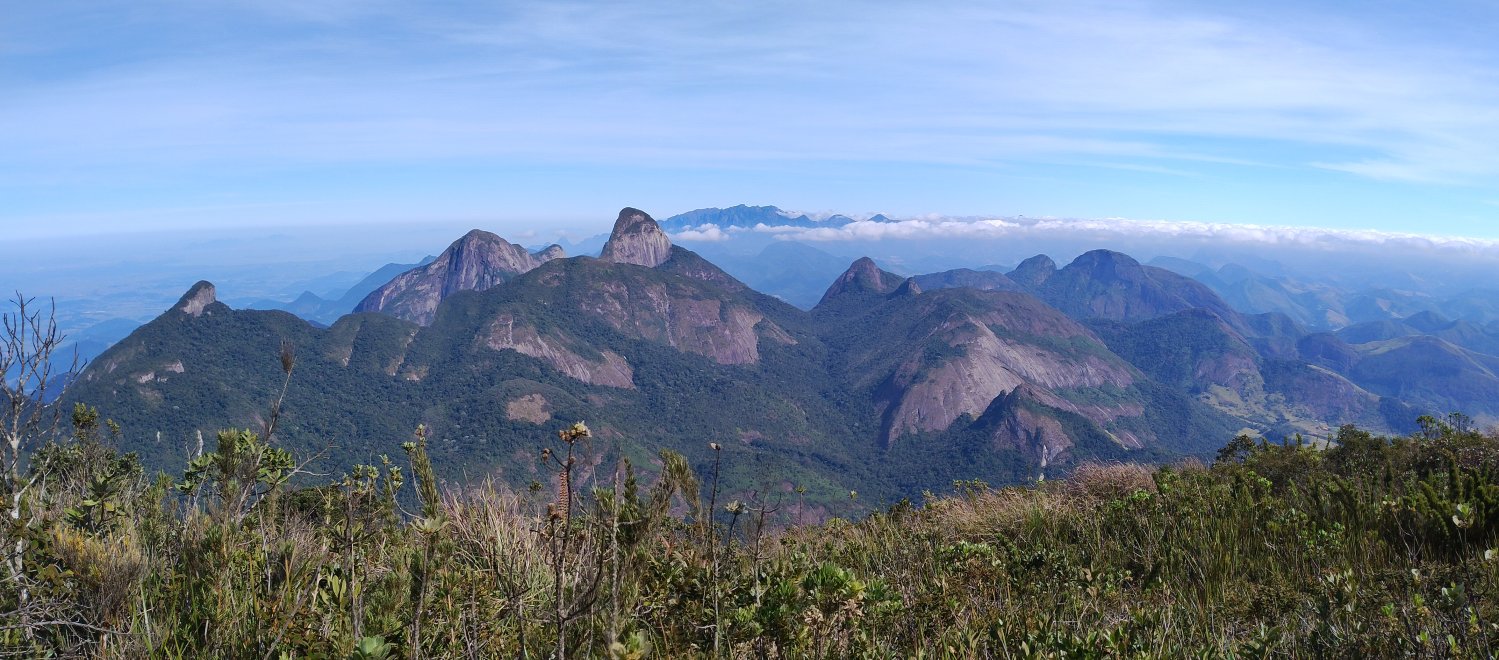 Vista dos Três Picos, Capacete e "Pedras dos Frades", a partir do cume do Cabeça de Dragão. O Branca de Neve é a maior montanha deste último conjunto e está no centro da foto.