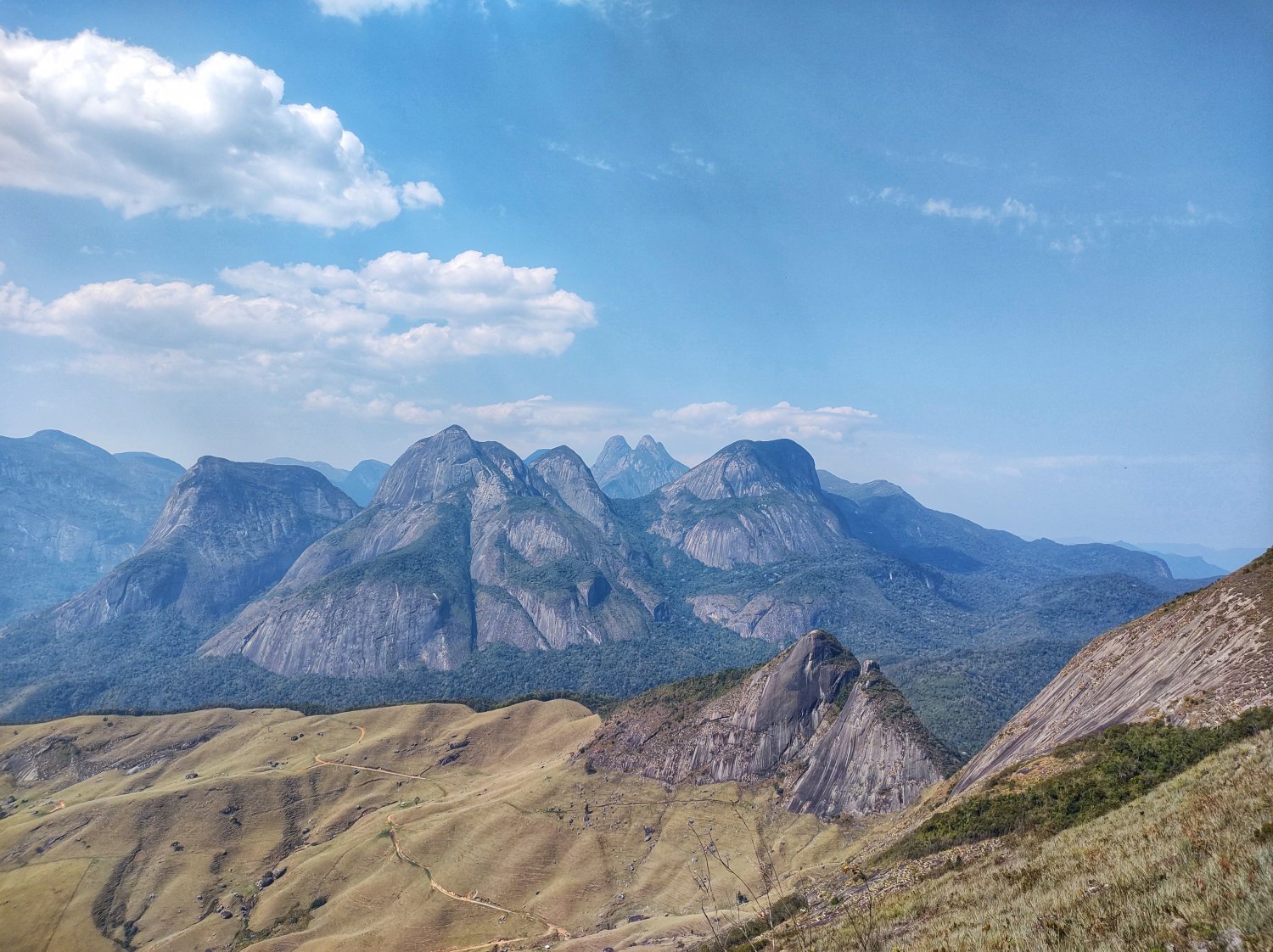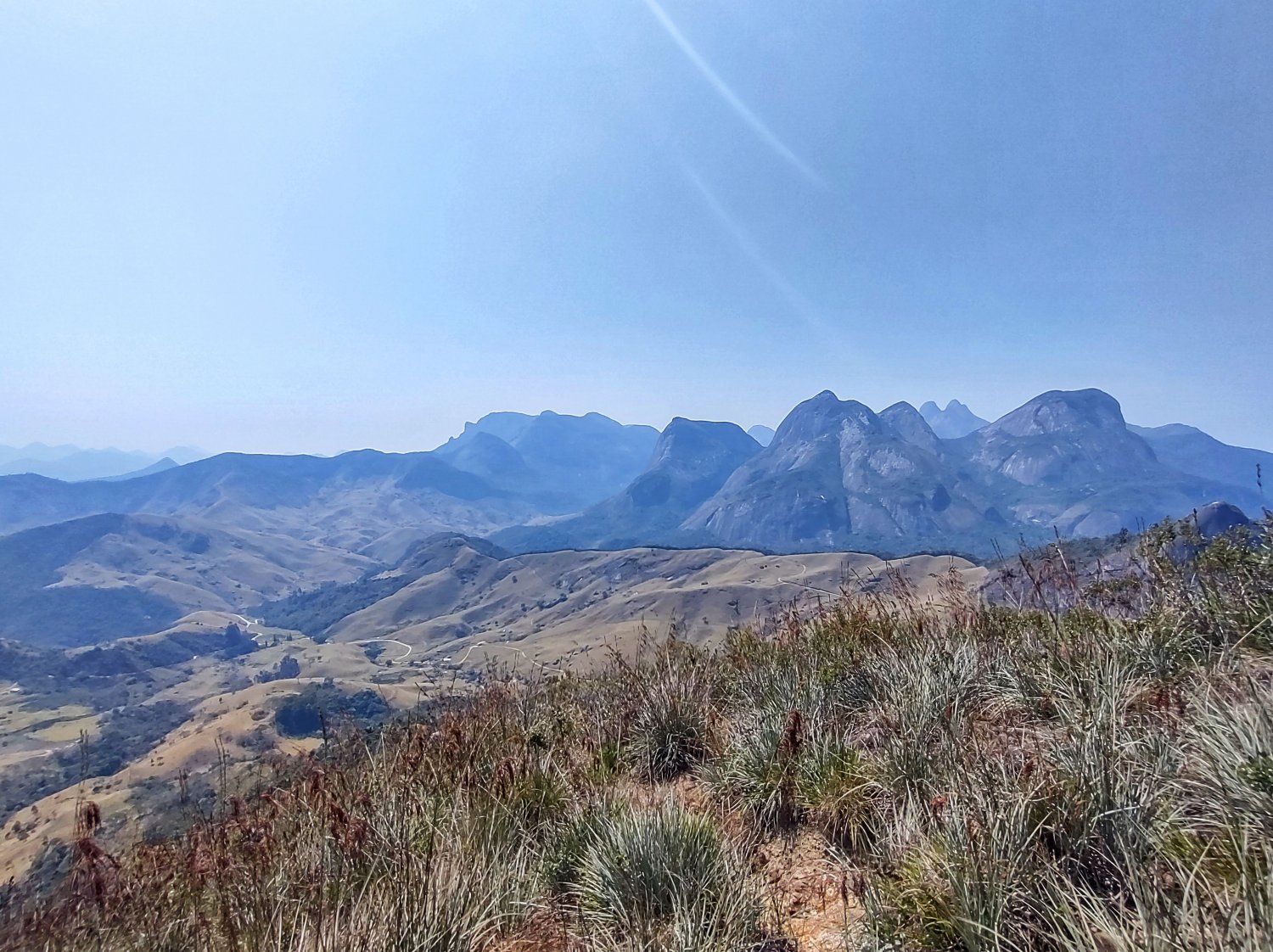 Seguimos margeando a cerca de arame farpado num trecho de pasto que pouco depois começou a inclinar bastante. O objetivo era chegar no topo desse primeiro morro. Nesse trecho, começamos a ouvir gritos. Eram pessoas fazendo a trilha dos Dois Bicos e nos “avisando” que estávamos na trilha errada. Tentamos avisar que nosso destino era outro, sem muito sucesso.