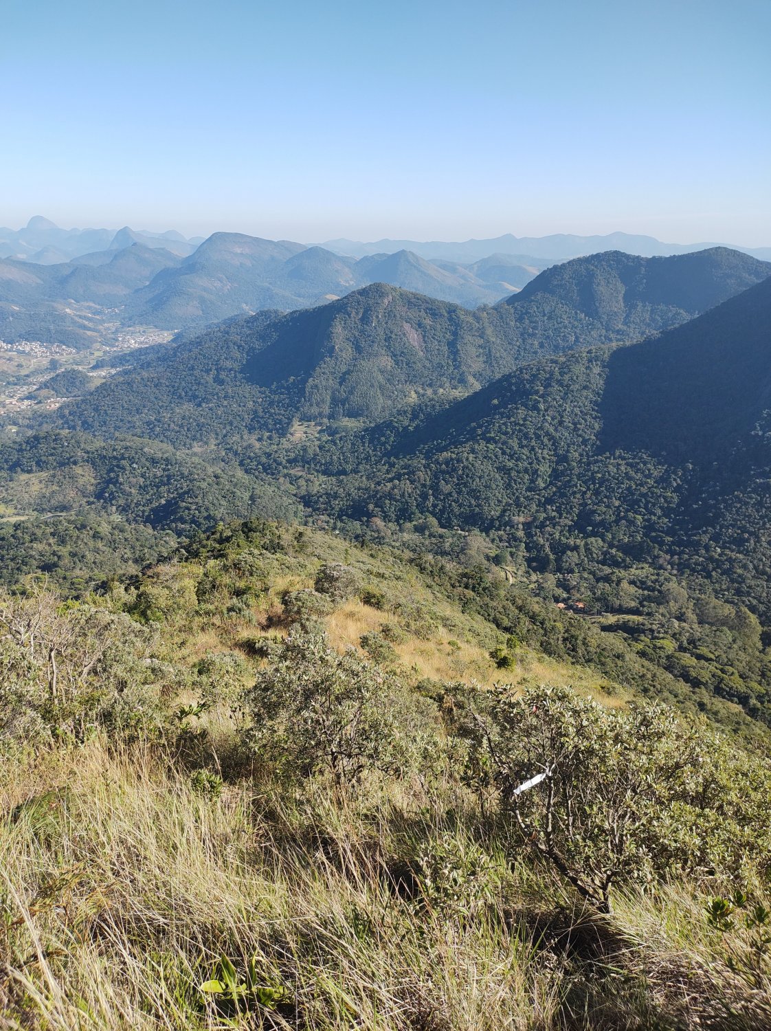 A partir desse ponto, a trilha fica mais fechada e, em alguns pontos, mais difícil de “navegar”. A vegetação também não ajuda, toda hora ficávamos presos em algum mato. Por outro lado, a subida é bem discreta e cerca de 400m e 15 minutos depois de deixarmos o Cabelo, chegamos na Testa (1728m). Não havia livro de cume, então só tiramos algumas fotos e seguimos em frente.