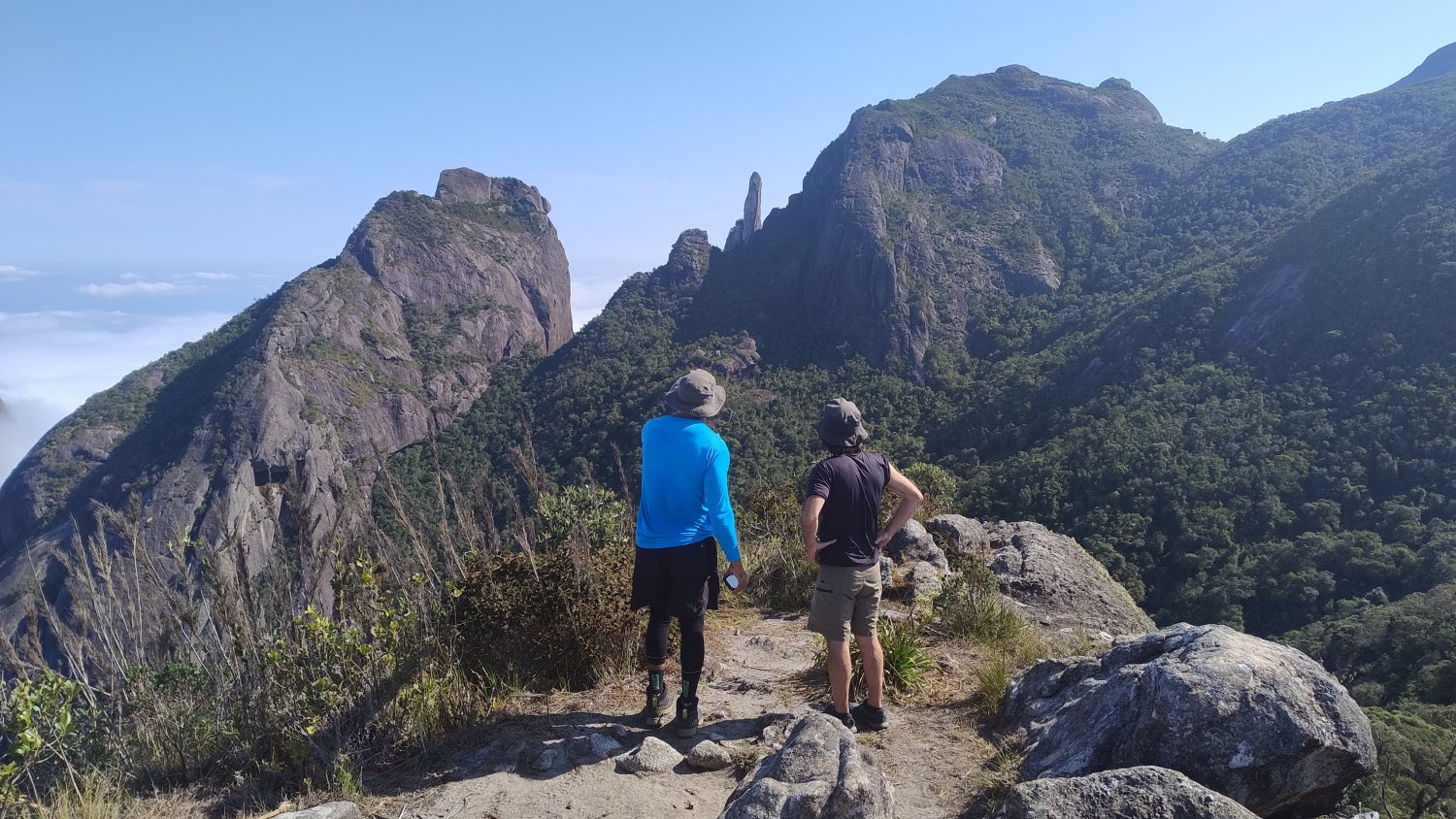 O visual do cume é bastante impressionante. Podemos ver o Açu, o Garrafão num perfil diferente, a Pedra do Sino um pouco mais acima, Papudo, Morro da Cruz e Queixo do Frade, o São João e a Agulha do Diabo, essa última numa visão privilegiada. Mais distantes, estão as montanhas dos Três Picos. Eu diria que o visual é mais bonito que o da Pedra do Sino. Mas é a minha mera opinião.
