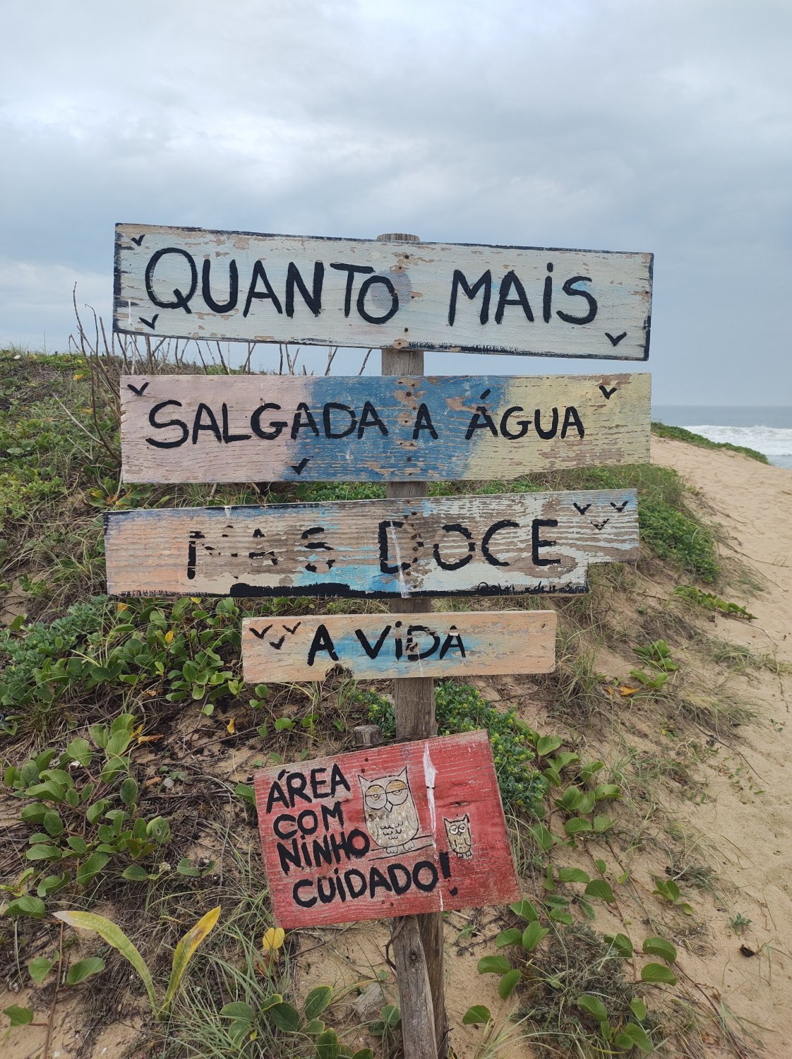 Tiramos mais algumas fotos e começamos um trecho de aproximadamente 1,2km pela areia da praia até o bar onde a Júlia e o Octávio nos esperavam. Tirei algumas fotos panorâmicas, pena que o tempo estava tão feio.