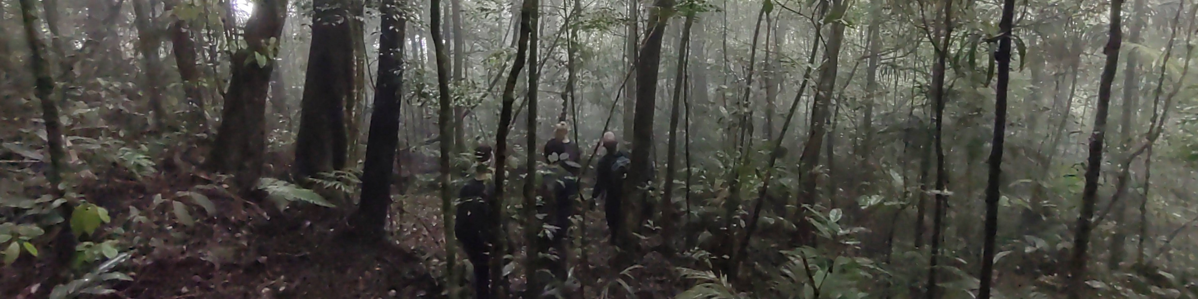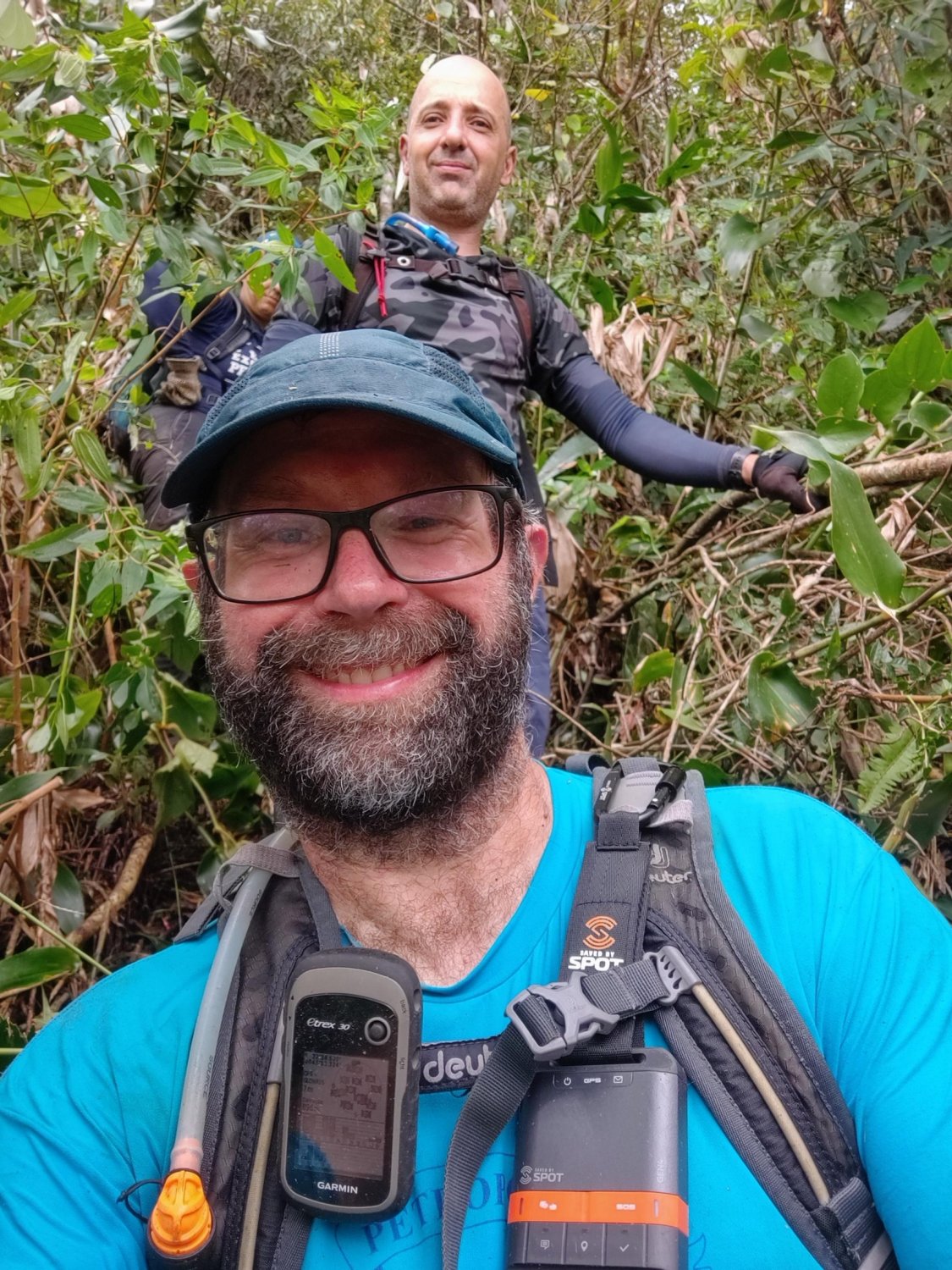 A chuva pesada dos dias anteriores deixava a trilha bem escorregadia. A umidade era grande e por volta das 10h eu já estava com a roupa completamente encharcada. Meu boné pingava e, obviamente, eu bebia muita água. Infelizmente, por estarmos caminhando numa crista, não havia nenhuma fonte de água.