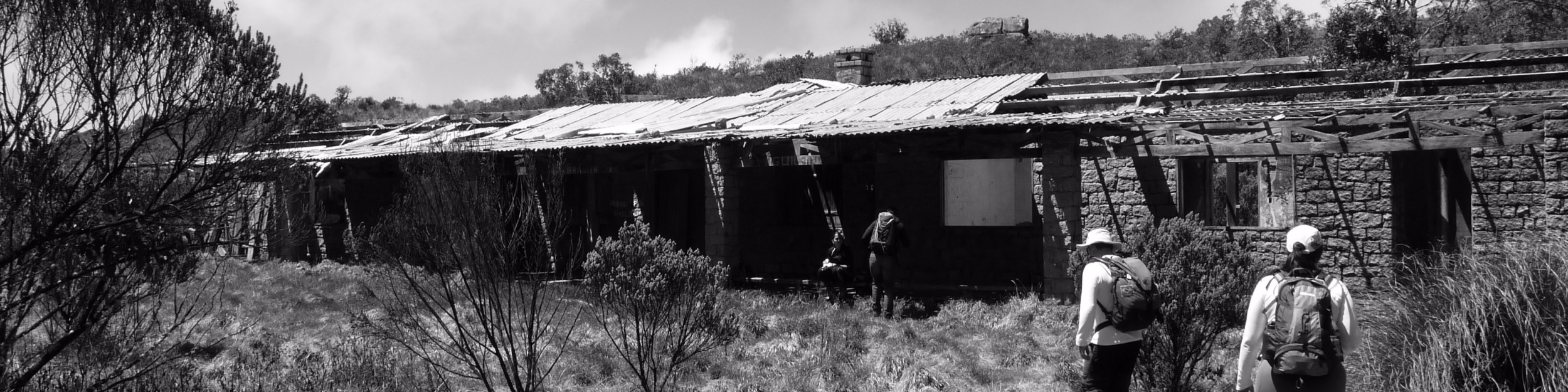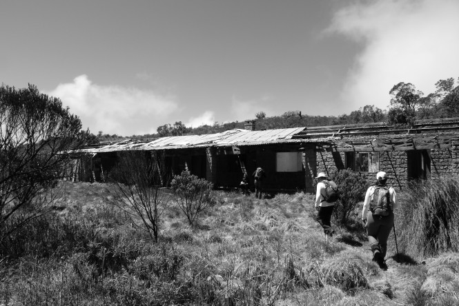 Apesar da floresta exuberante, já não tínhamos o visual da parte mais alta e a trilha fica menos incrível. Com pouco tempo de descida, passamos por outro abrigo, o Macieira. Paramos rapidamente apenas para tirar algumas fotos e comprovar o estado decrépito do abrigo (parece coisa de filme de terror).