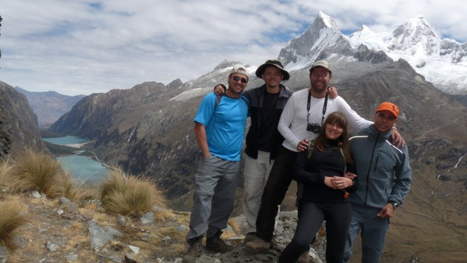 O grupo todo caminhou bem, e no tempo mínimo estipulado pelo nosso guia chegamos a Punta Unión. Deixamos nossos equipos no passo e subimos mais um pouco para poder apreciar o visual e tirar algumas fotos. Do alto do passo, tivemos uma impressionante vista da Cordilheira Blanca.