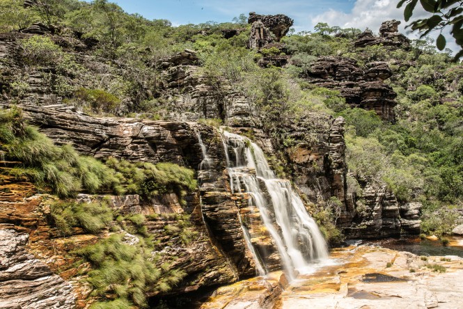 Depois de aproximadamente 1h de caminhada, chegamos à outra cachoeira do circuito: a Sempre Viva! As quedas são bem menores (entre 10 e 15 metros) e o poço fica um pouco abaixo da cachoeira, mas ficar debaixo das duchas foi revigorante. Valeu toda a viagem!