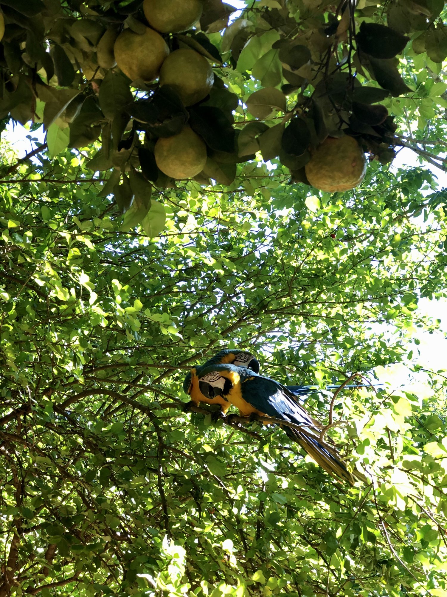 Nas duas manhãs que passamos lá fomos acordados pelo canto das duas araras, do tucano e do papagaio que vivem por lá. E acolhidos com um delicioso café da manhã.