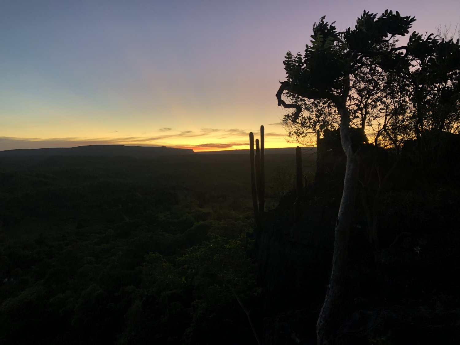 No domingo, acordamos 4:30 e com nossas lanternas fomos caminhando ao Mirante Terra Ronca para assistir o nascer do sol.