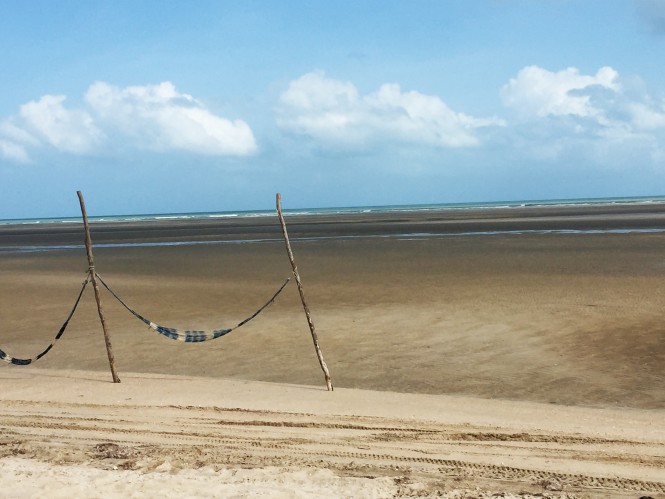 Seguimos na paisagem que alternava entre dunas e a beira da praia. É fácil encontrar redes para deitar, qualquer lugar com resquicio de população você encontraria uma rede armada.