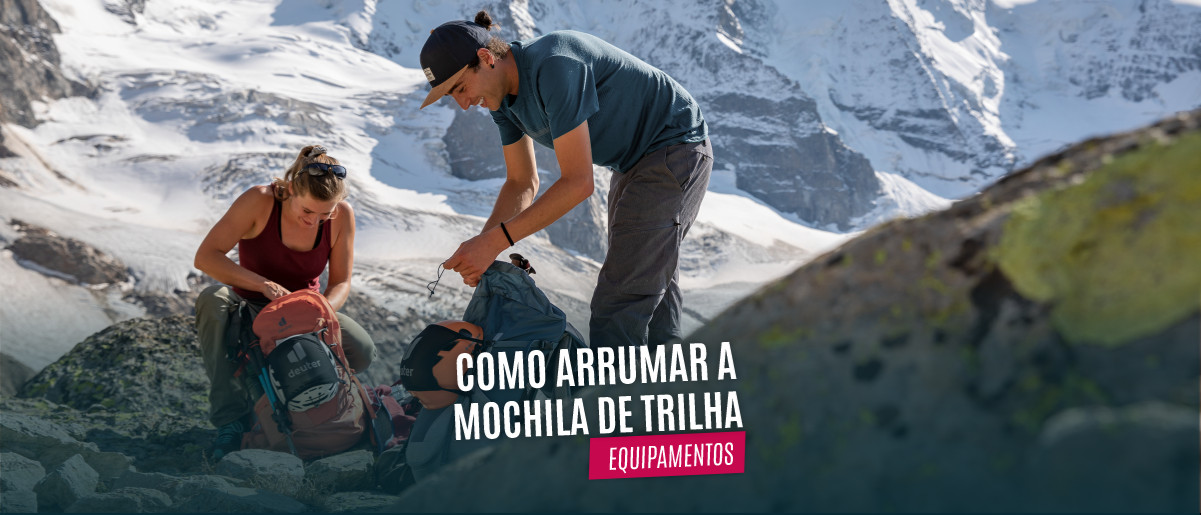 As mochilas de trilha devem ser organizadas em camadas com base no peso e no uso dos equipamentos. Os itens mais pesados devem ficar perto de suas costas para manter o centro de gravidade. Os itens menos usados vão para a parte inferior e os itens que você pode precisar durante o dia vão para a parte superior. Dessa forma, você não terá que remexer e tirar tudo quando precisar do papel higiênico ou da jaqueta impermeável.