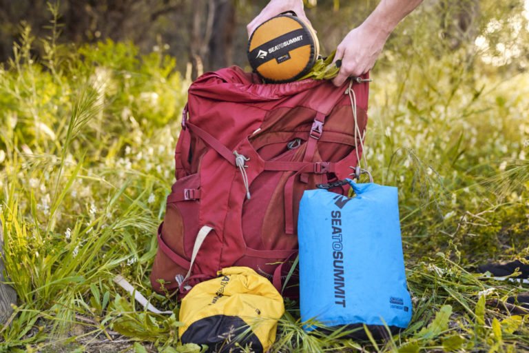 - A comida também vai em um saco estanque, pois isso ajuda a proteger o interior da mochila e evita que algum animal ache a comida facilmente durante os acampamentos.
