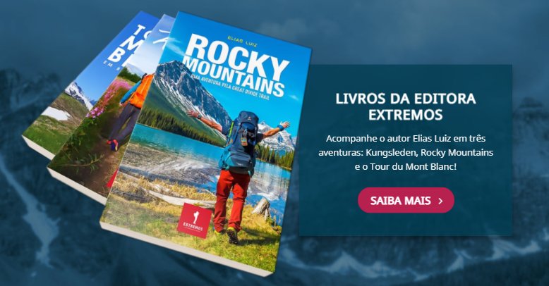 Contamos também os livros da editora Extremos: Rocky Mountains – Uma aventura pela Great Divide Trail – Extremos; Kungsleden – Uma caminhada no Ártico – Extremos e Tour du Mont Blanc, em Busca de Emelie – Extremos. Neles, acompanhamos as histórias do autor Elias Luiz em suas aventuras pelos Alpes franceses e escandinavos, o Círculo Polar Ártico e a Cordilheira das Rocky Mountains, no Canadá. São obras simplesmente incríveis.