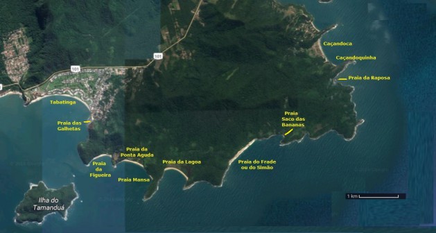 seguindo pela praia Ponta Aguda, praia Saco das Bananas, praia da Raposa.
