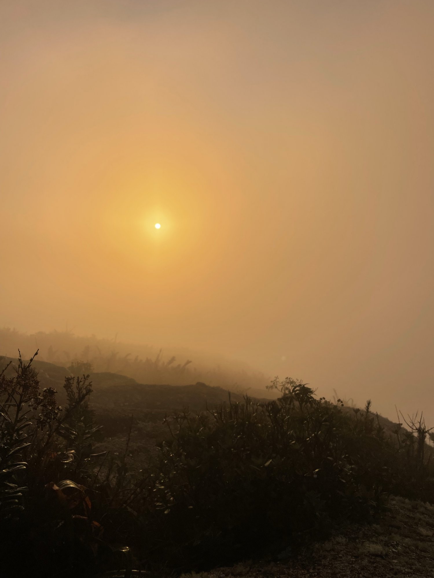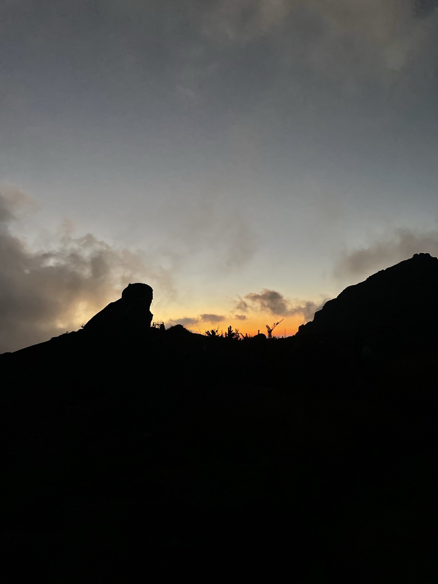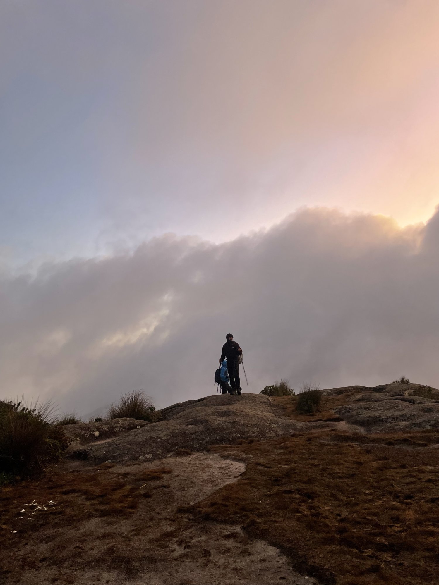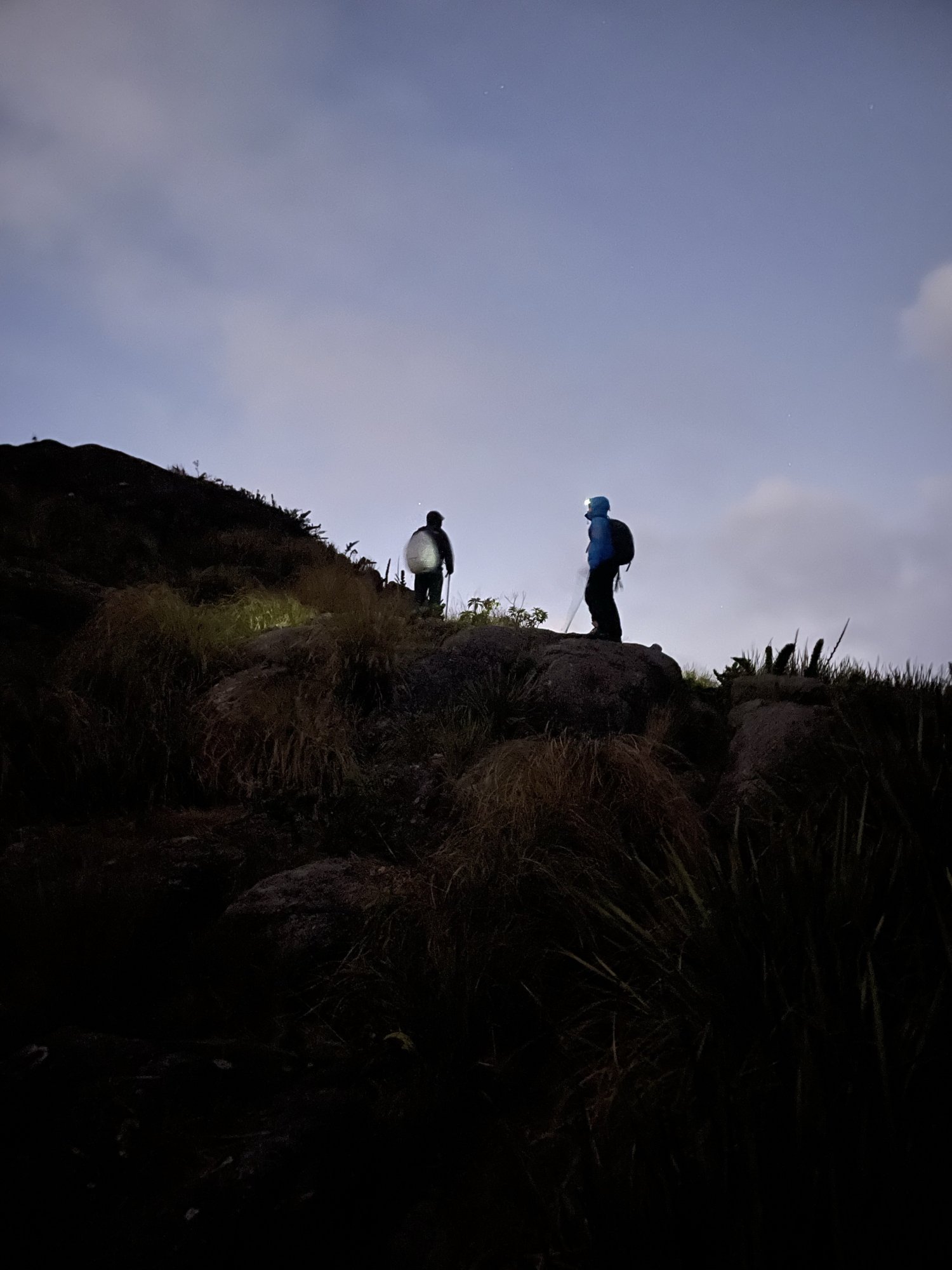 Fizemos a subida com 4:43:55 e a descida com 4:28:24. Quase chegando no cume pegamos um clima mais ameno, e ficamos na esperança de que as nuvens se dissipassem para vermos o nascer do Sol no cume, porém quando chegamos, ficamos cerca de 2 horas esperando o Sol aparecer, e ele apareceu tímido por 5 minutos e depois foi só neblina e ventania, não teve vista e céu limpo, mas o que importa é que deu cume 😂🙏🏼⛰