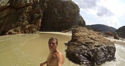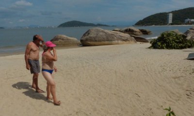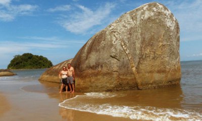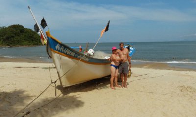 Deixamos os carros no estacionamento em Pontal do Sul - Paraná, pegamos o barco e cerca de 40 minutos estávamos na ilha do mel.