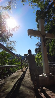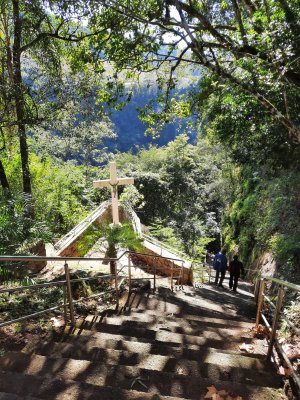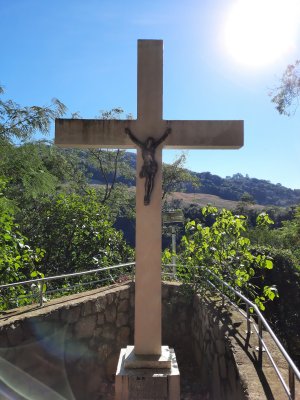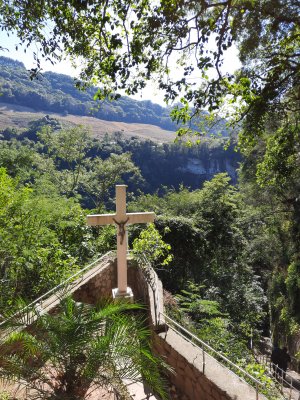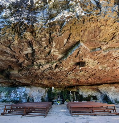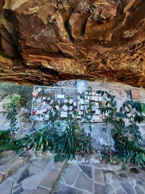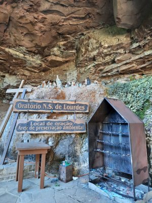 Uma pequena igrejinha ao ar livre em uma gruta.