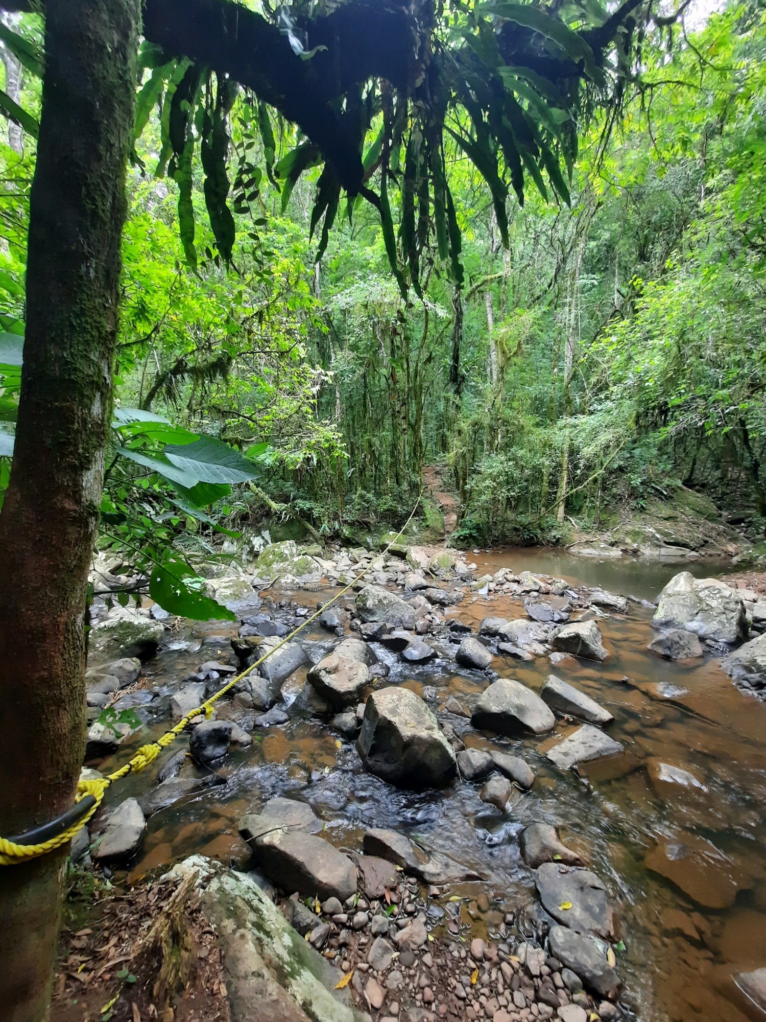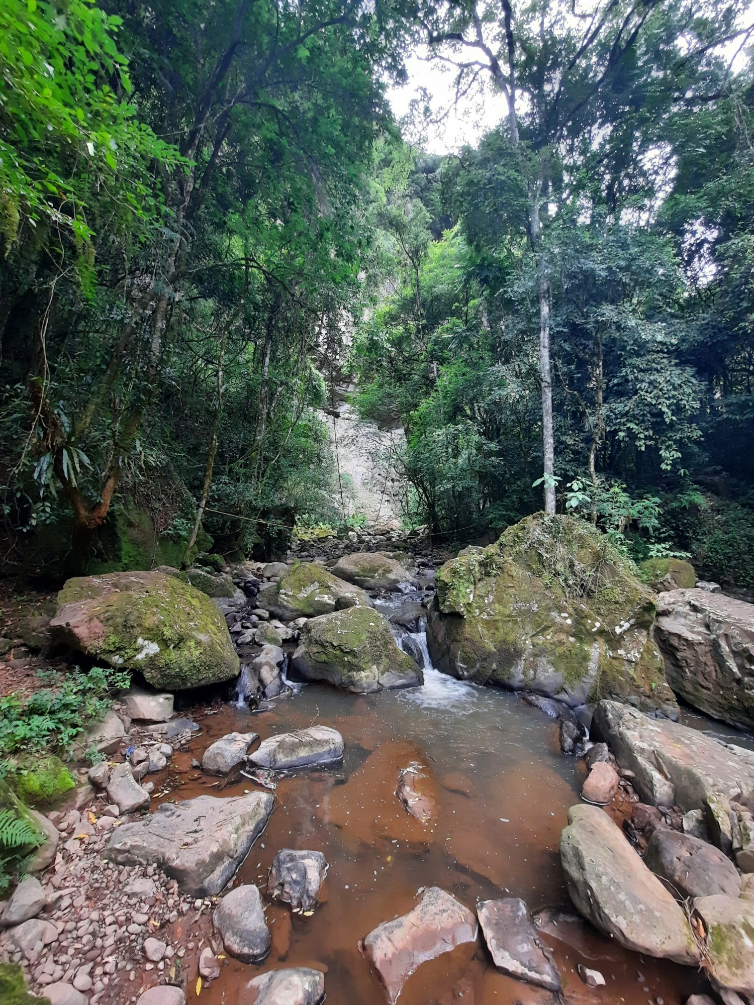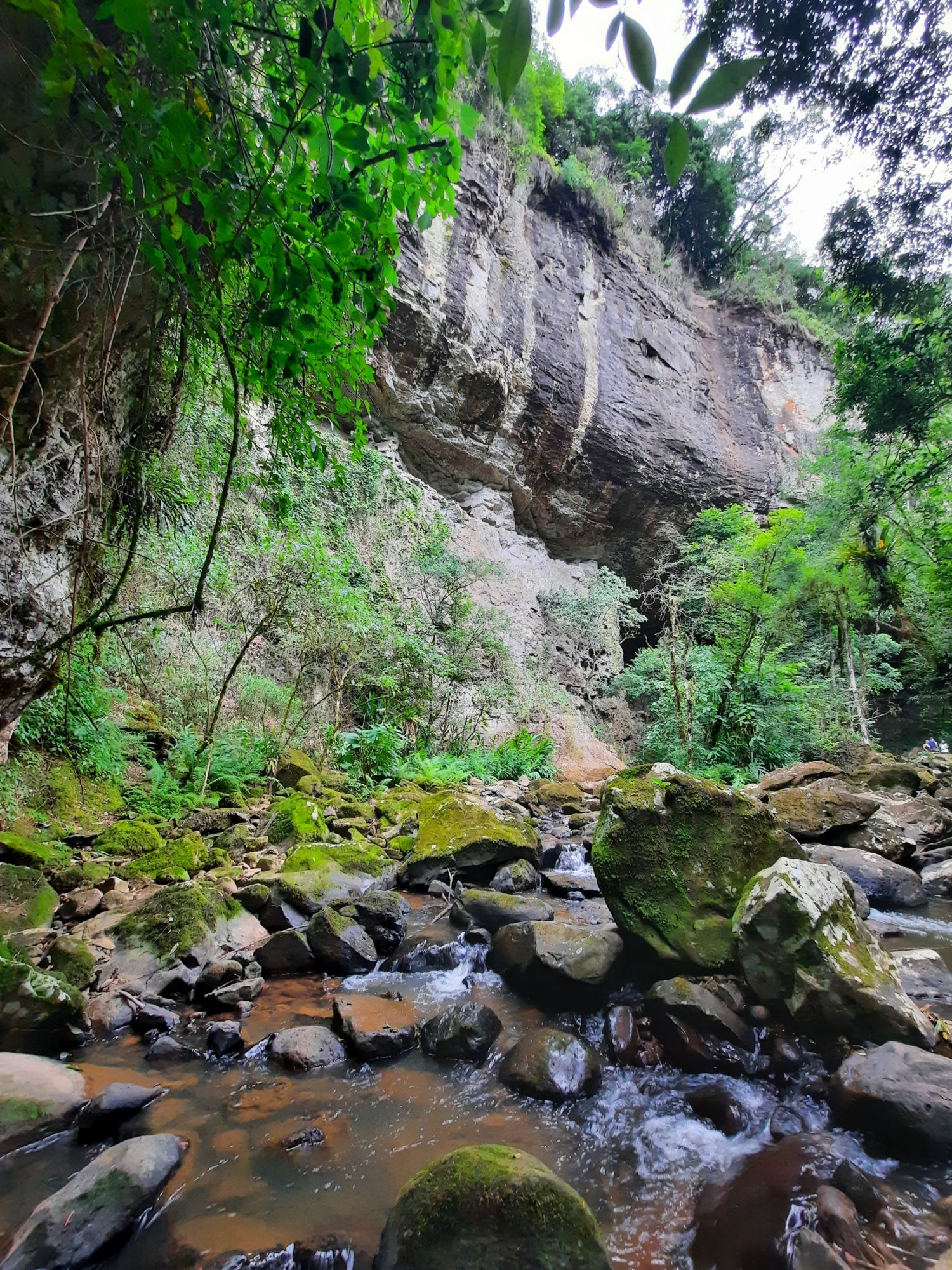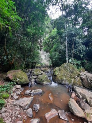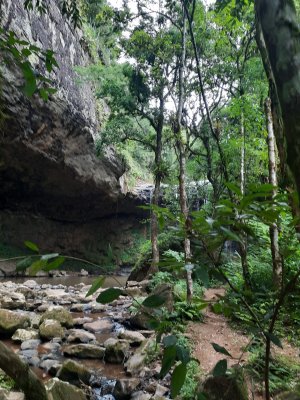 Lugar com uma queda de cascata onde pode-se tomar banho e com trilhas para fazer.
