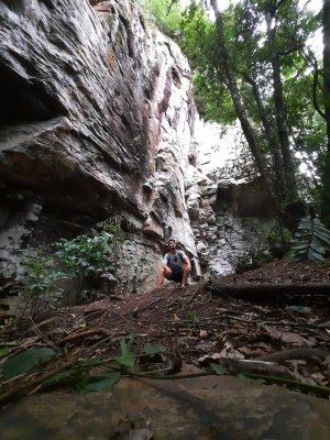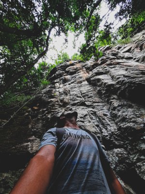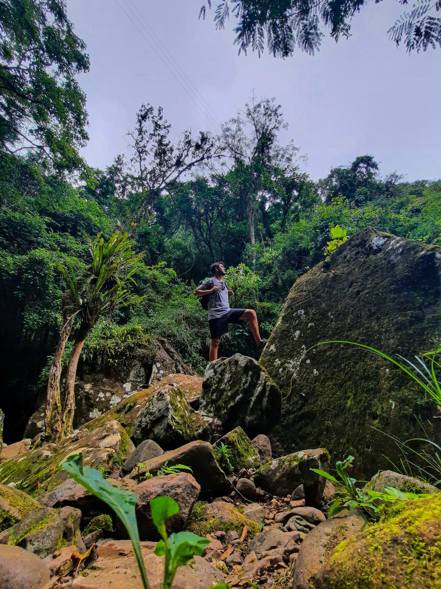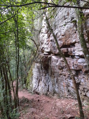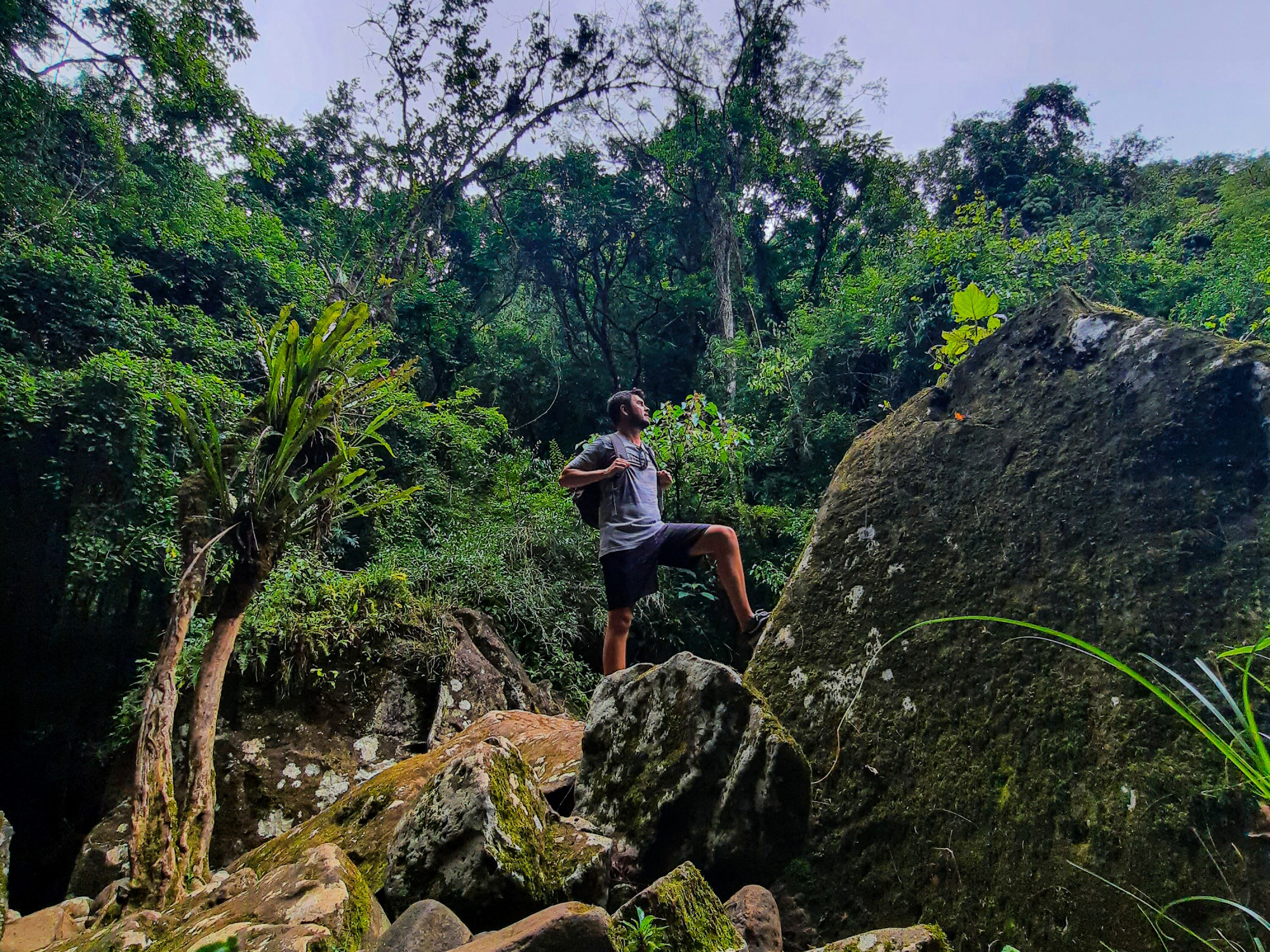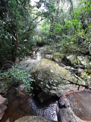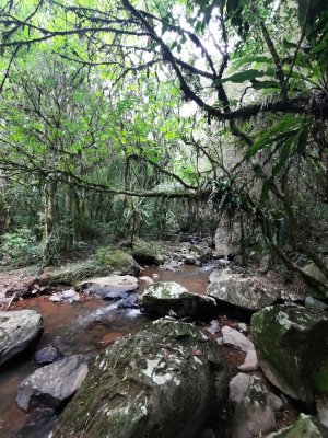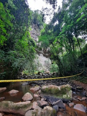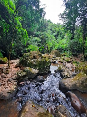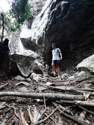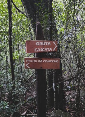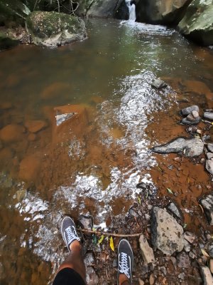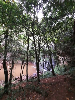 Lugar com uma queda de cascata onde pode-se tomar banho e com trilhas para fazer.