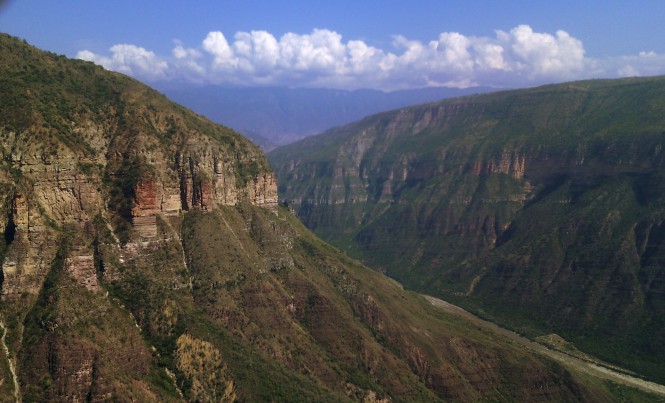 Para isso, terá que descer pelo cânion del Chicamocha. São 900 metros de declive até o rio del Chicamocha. A cidade foi erguida às suas margens, 3km à frente.