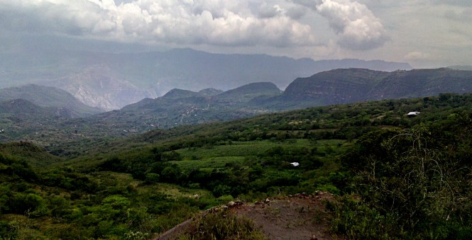 De Barichara a Guane, são 5 quilômetros, descendo, e depois mais 7 quilômetros, subindo. Boa parte do caminho está sinalizado com bandeiras amarelas. Neste dia, avistaremos o cânion Suarez em vários pontos.