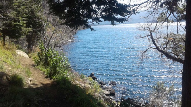Em Aluminé, descobrimos que não havia nenhum transporte público até o início da trilha, no lago Ñorquinco. Como os taxis nos cobraram uma fortuna para fazer os pouco mais de 30km, acabamos encarando o trajeto no dedão mesmo. Depois de três caronas, chegamos no início da trilha às 14h. Por certo, não deixam ninguém fazer esse percurso depois das 12h, porém a guarda-parque permitiu a passagem depois que conversamos um pouco.