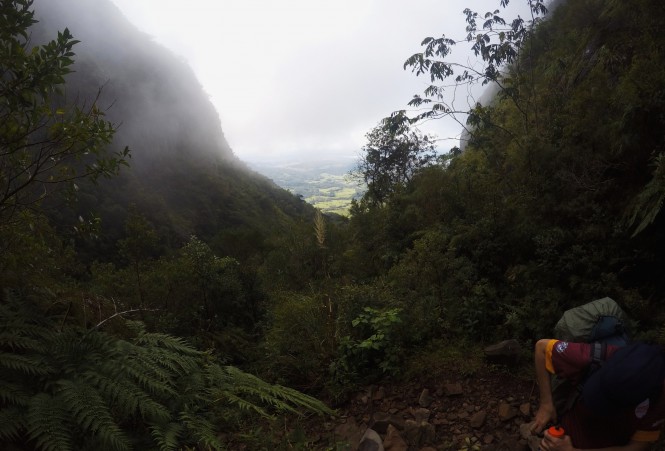 A outra opção que conheço seria descer pela Serra do Pinto, como no outro relato que publiquei sobre a região (caminhada nas cumeeiras, que pode ser lida aqui). Essa é a mais difícil, com as descidas e subidas mais íngremes, exigindo, no mínimo, 8 horas de caminhada. Que, como você pode ver abaixo, também é a decida com vistas mais bonitas.