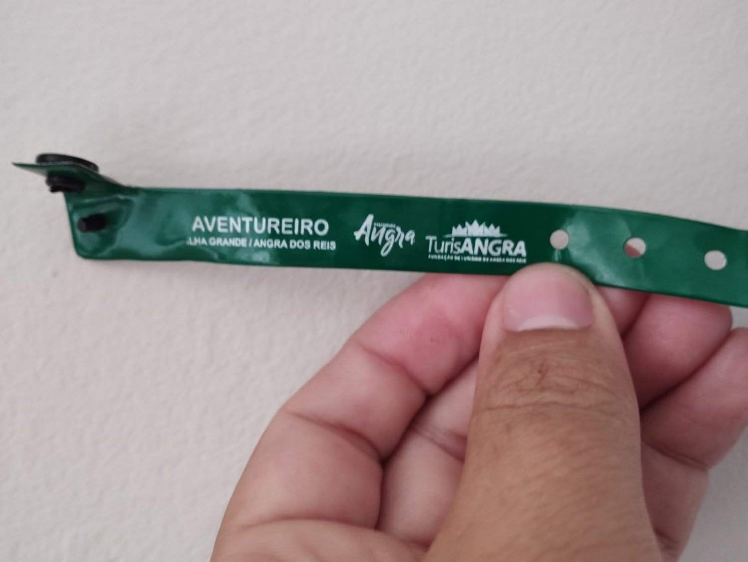 Pulseira de Acesso e Permanência na Praia do Aventureiro, fornecida pela TurisAngra em números limitados.