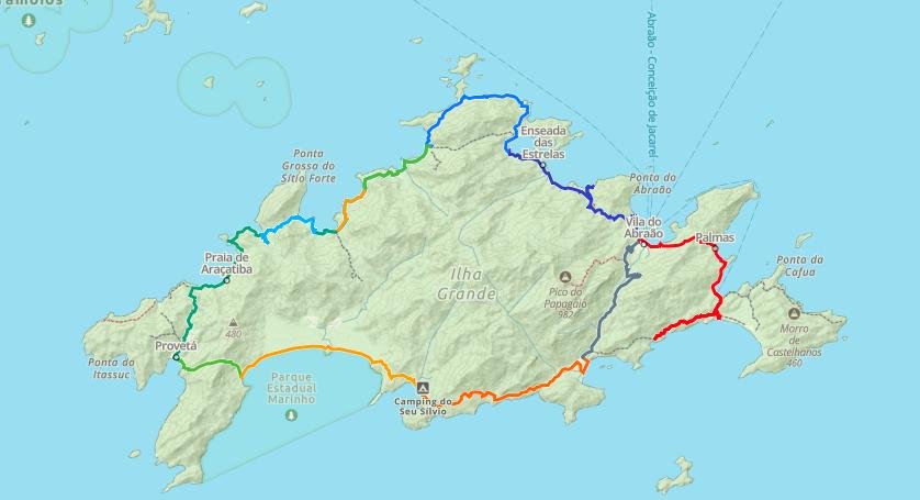 Este post não é uma relato da Volta à Ilha Grande, mas alguns comentários sobre as autorizações necessárias e trajetos para completar a volta à Ilha completamente dentro da lei, cumprindo todas as exigências necessárias.