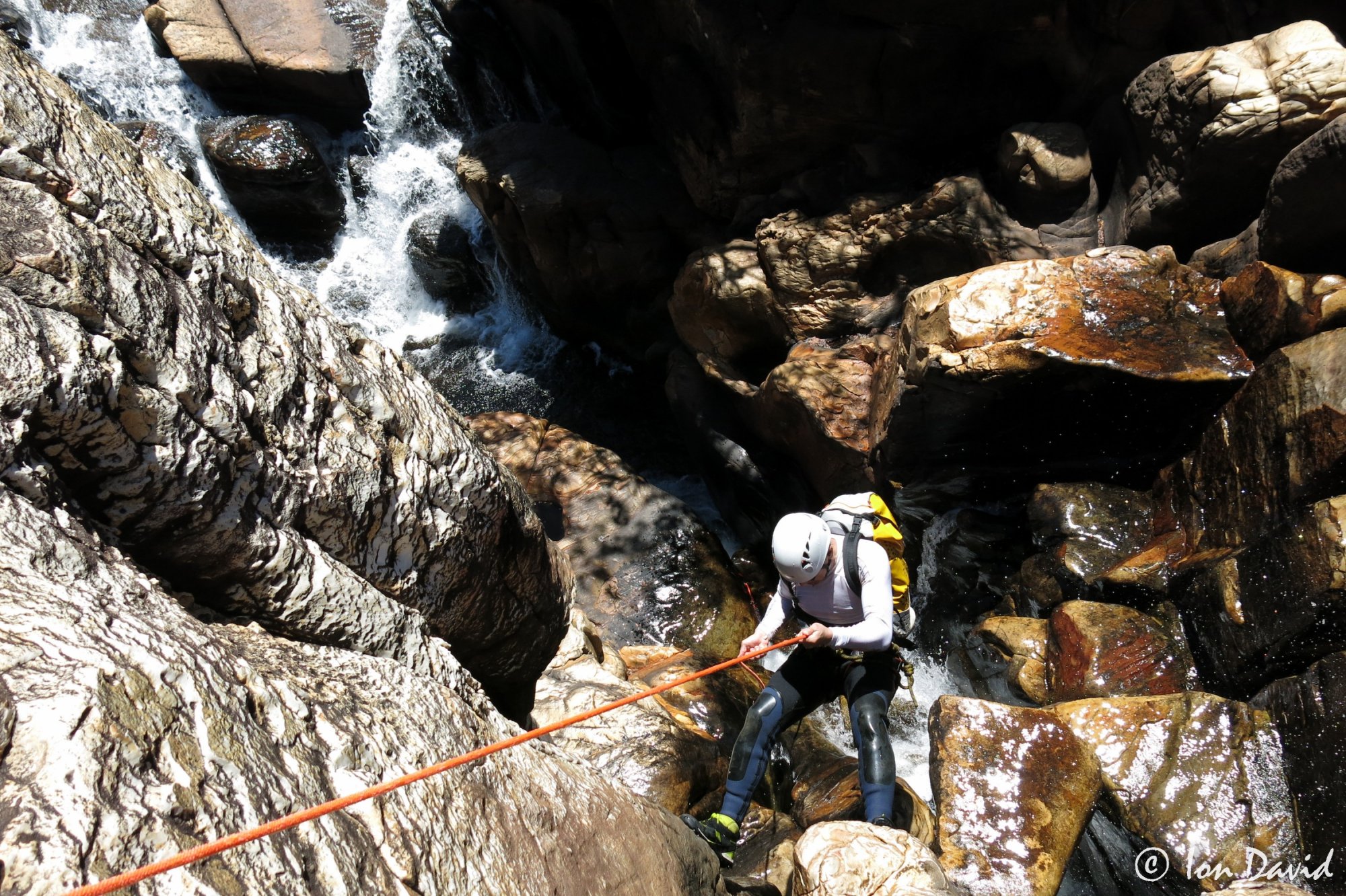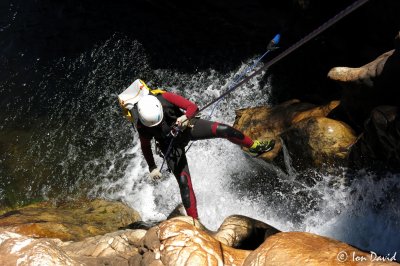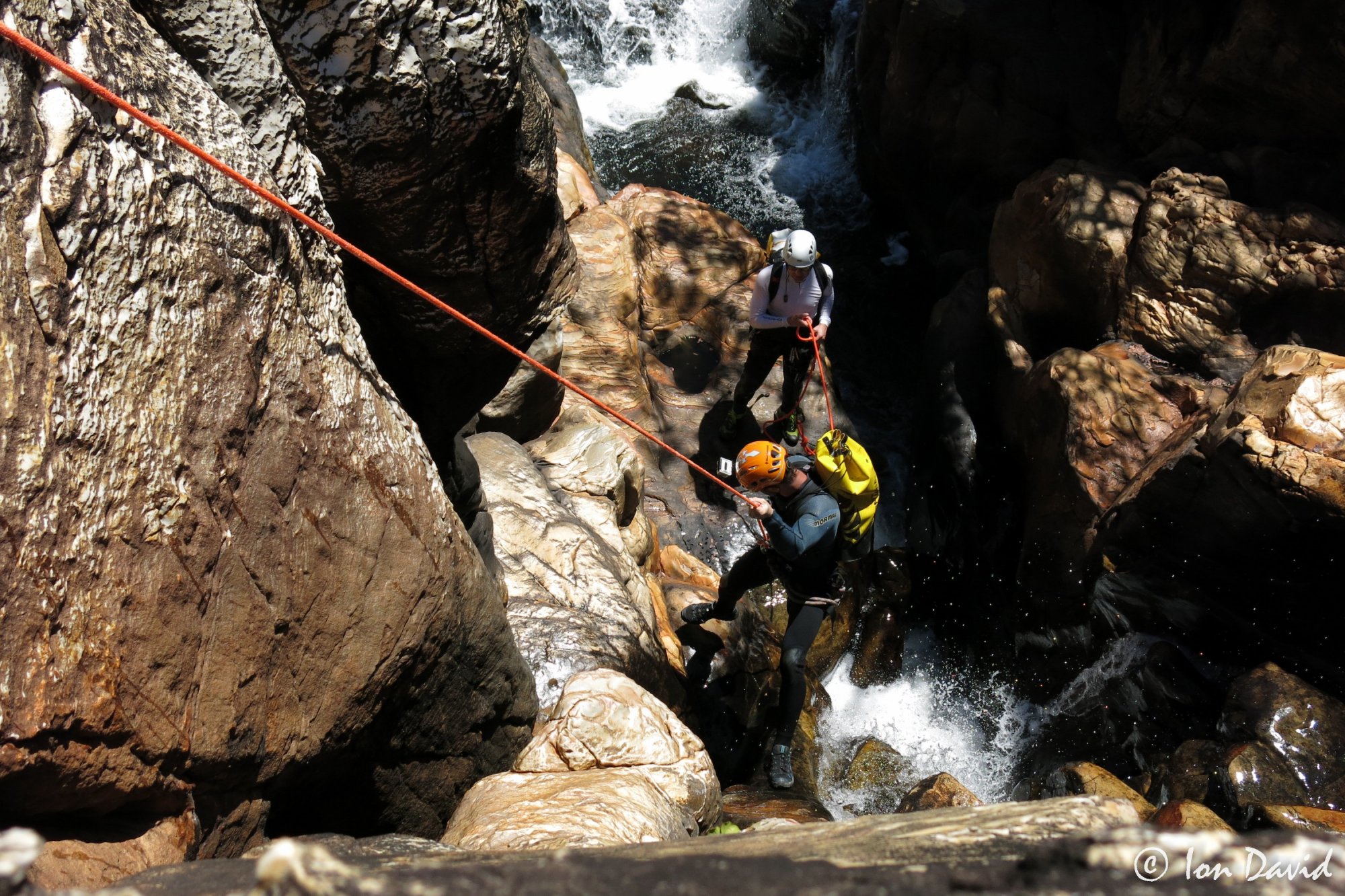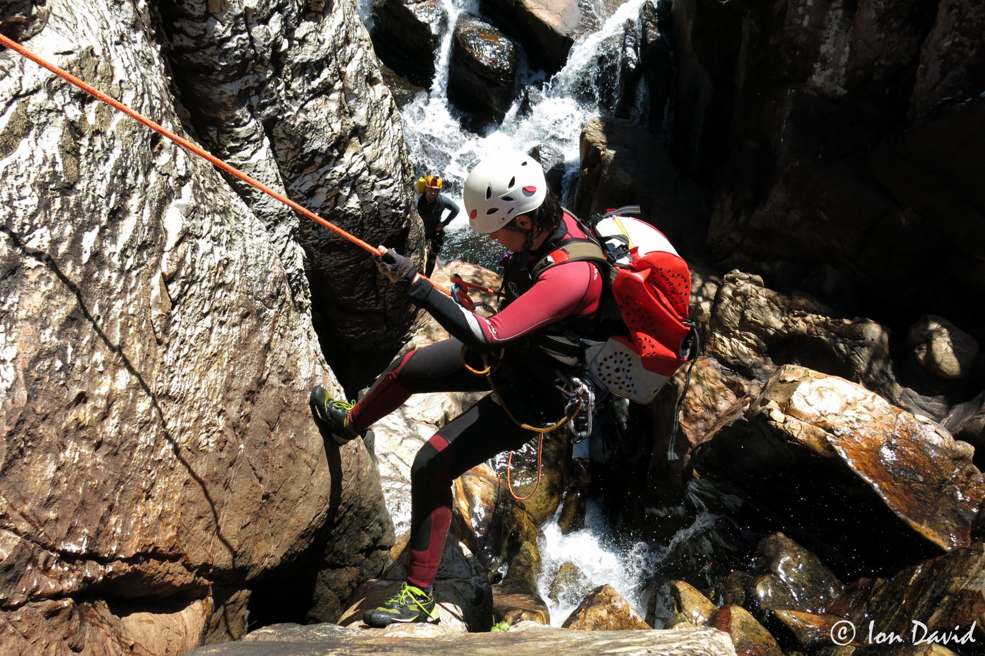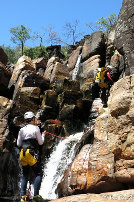 Atividade acontece no P N da Chapada dos Veadeiros, são 6 rapeis e um salto passando pelo Carrossel e a descida na cachoeira do Garimpao.