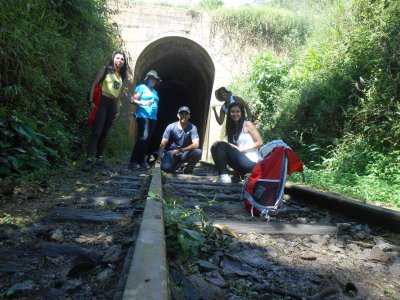 Nossa nona trilha. Conhecendo o lendário Túnel da Mantiqueira, depois um belo mergulho nas águas cristalinas do Poço Azul.