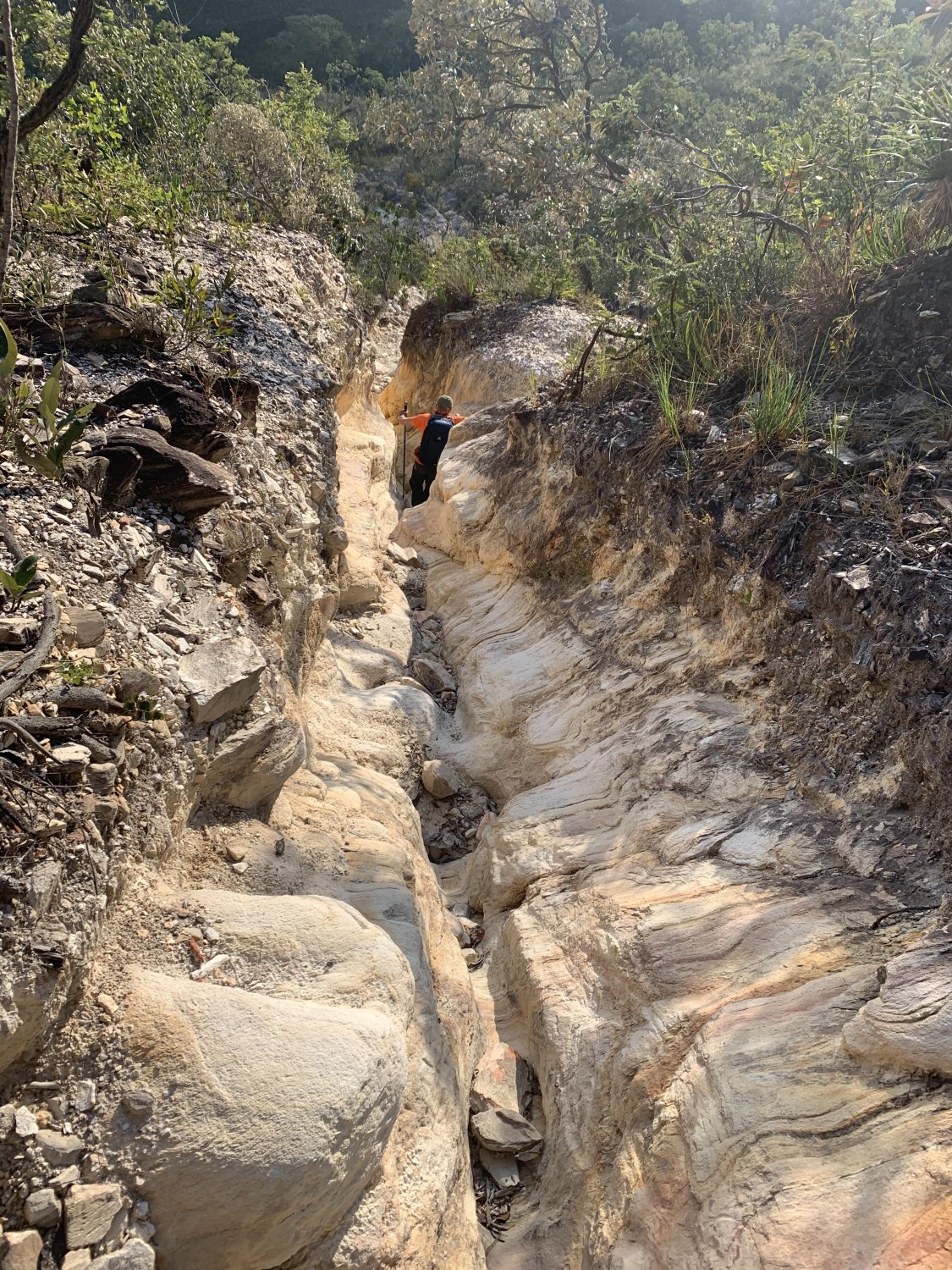 Último dia de travessia: retorno ao hostel pela trilha do "rasga-saco", muito usada pelos praticantes de enduro com motocicletas e, infelizmente, com marcas profundas na paisagem pelo seu uso.