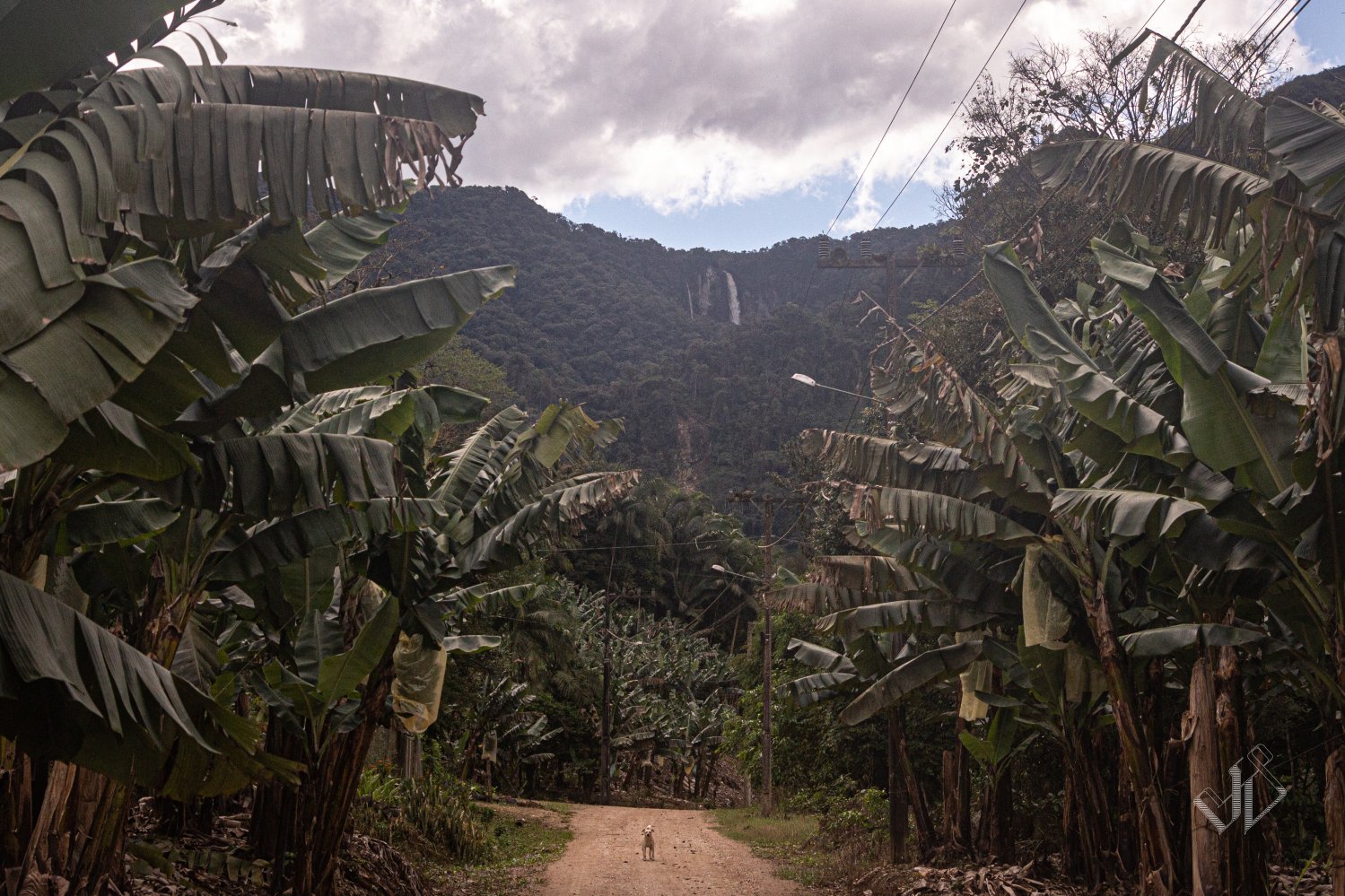 Depois de vinte e poucos quilômetros e uma bela subida de 970m, o caminho desce a serra por uma estrada um tanto quanto isolada e tranquila. Descobri que a Rota das Cachoeiras, uma trilha para se percorrer a pé que parecia bem interessante, e que seria ponto de parada do dia (fim do trecho 1), estava fechada também, então tive que esticar até Corupá. Um trecho que cruzava várias vezes a linha do trem que vai ao litoral, e com várias pontes sobre os riachos que descem a serra. Por vezes, atravessava os riachos literalmente, sem ponte, pois eles corriam por cima da estrada mesmo.