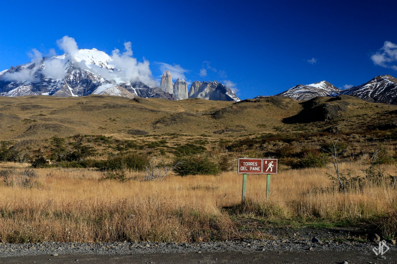 Comecei a caminhar às 10h30, saindo da Portaria de Laguna Amarga, entrada do parque. Poderia ter pago uma van para ir até o Hotel Torres, economizando 1h30 de caminhada (7,5 km) numa estrada de terra, mas estava sem pressa e finalmente estava no parque! Depois da primeira ou segunda curva na estradinha, já se vê as torres, e para todo lado que se olha, há o que fotografar. Lhamas pastando, pássaros, coelhos, árvores, riachos, uma paisagem que fez este pequeno trajeto até o início da trilha valer cada minuto de atraso. E foi um belo atraso.