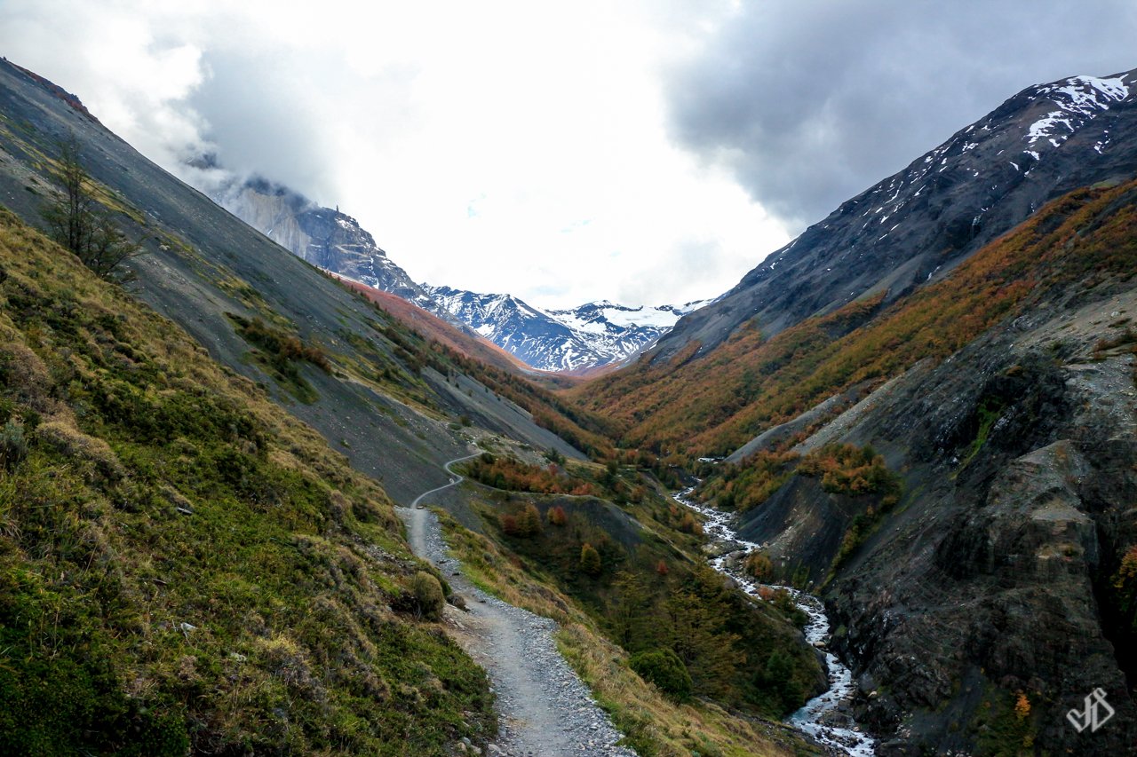 A trilha é basicamente um retorno pirambeira abaixo até o Refúgio Chileno, e um desvio próximo ao Hotel Torres, em direção ao Refúgio Los Cuernos, a 16 km. Grande parte da trilha tem uma bela vista do lago Nordenskjold, avistam-se muitas aves e eventualmente um coelho ou outro, pois os calafates e murtillas estão dando frutos nessa época.